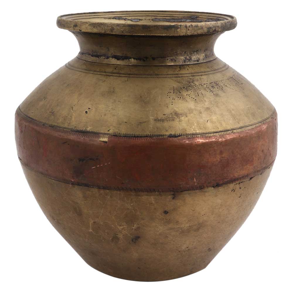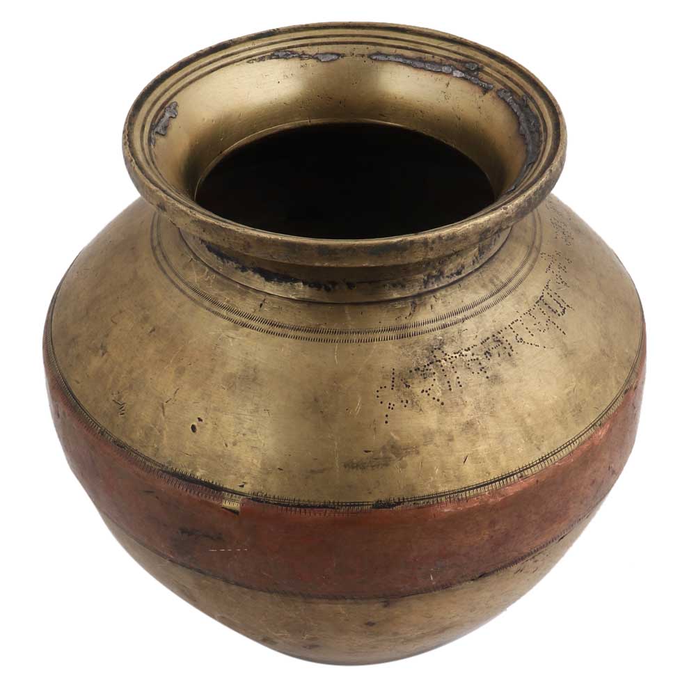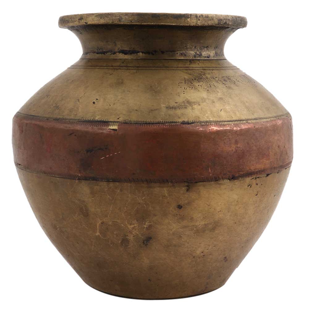 Unique Brass Copper Ganga Jamuna Holy Water Pot Kalash is a great talking piece made with copper and brass together using the traditional Ganga Jamuna Technique made by the local artisans using traditional tools an methods . Pooja Gift, temple decoration, wedding gift, stage decoration for near and dear ones.