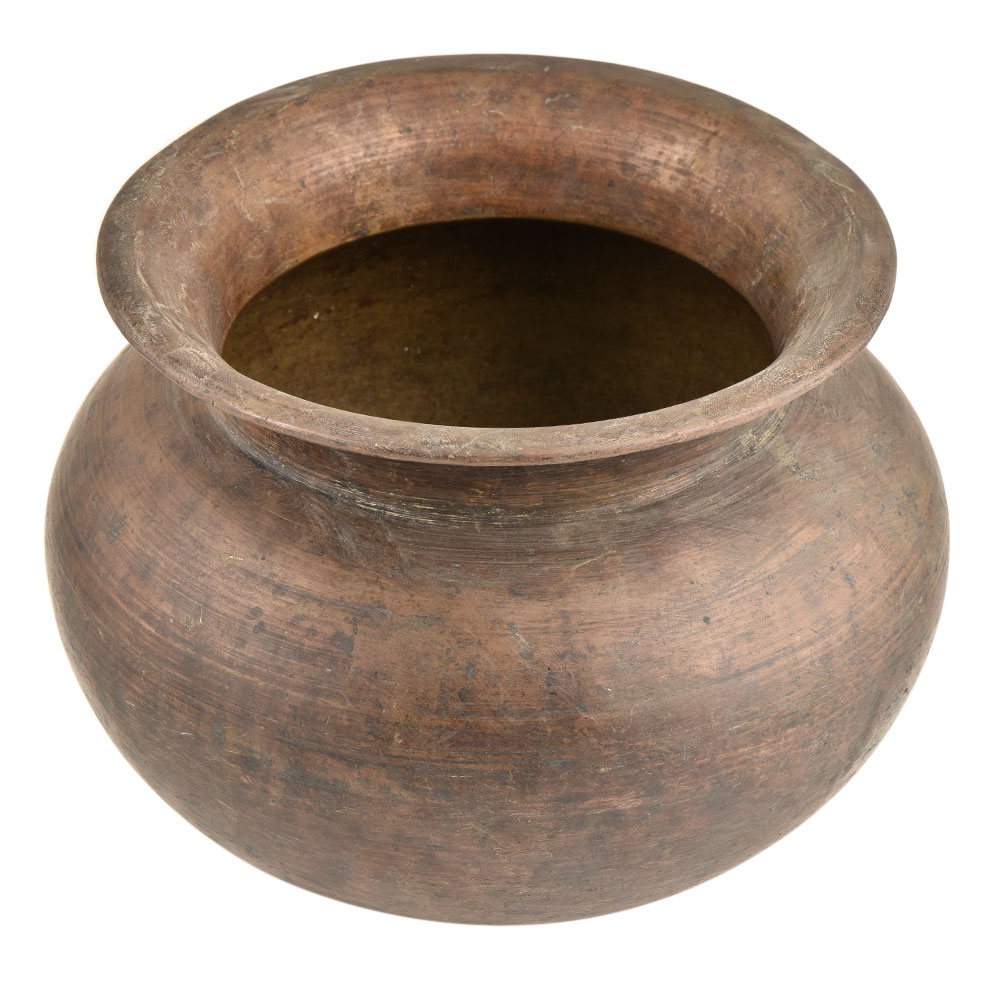 • Unique Brass Tribal Style Bronze Pot With Incised Concentric Rings