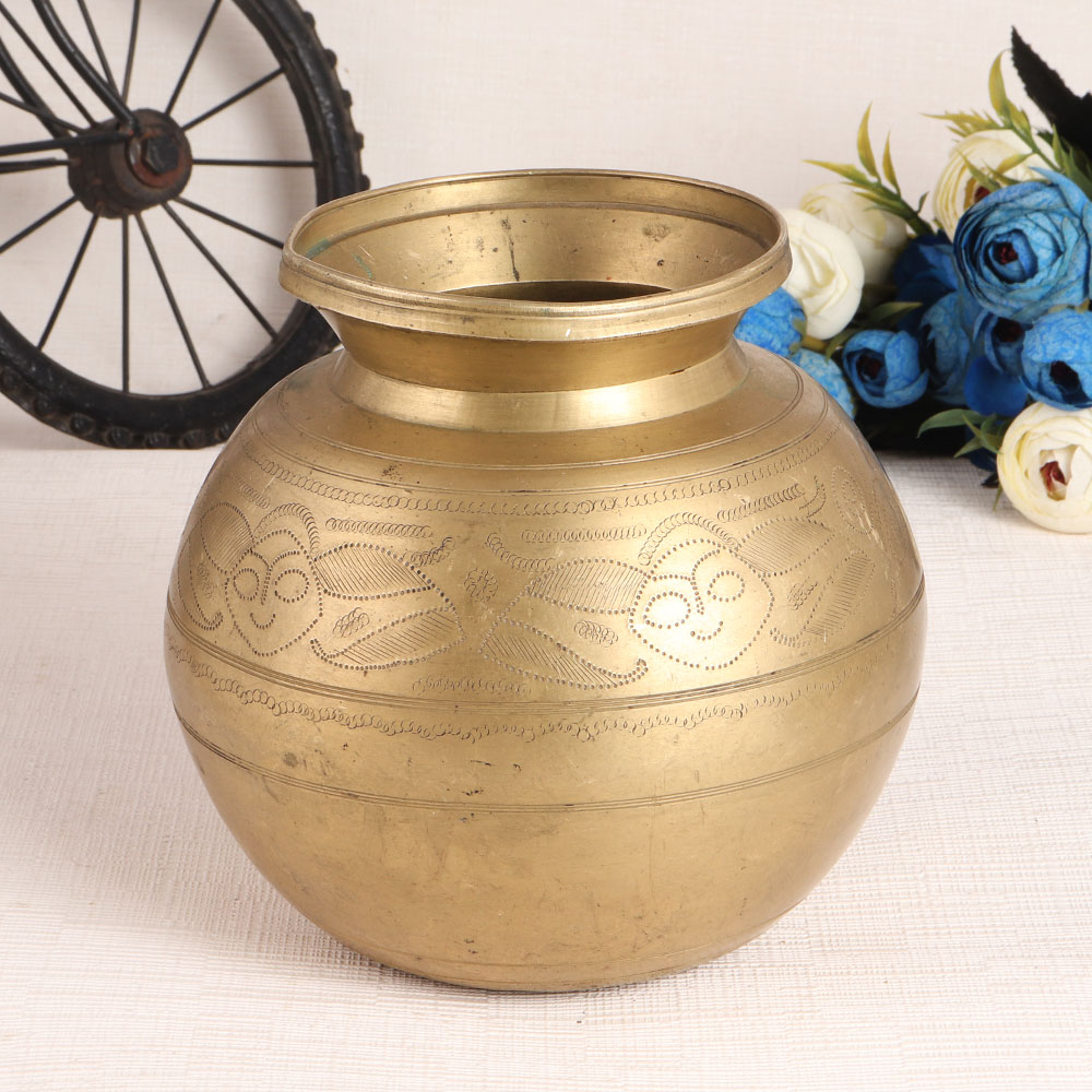 Give your home a charming interior with a beautiful round lota decorated with needlework. It has a golden finish that will add a touch of vintage to your restaurant and hotel interiors. Buy a brass lota online from our website and have it delivered to your home. Since it is made by local Indian artisans with their hands, it will beautify your interior with this antique finish. Place this brass water pot on a shelf or table and it will spread positive energy in the environment. An auspicious lota that can be used to offer water to the sun god, which helps keep the mind and spirit in balance. Gift this auspicious lota to your loved ones on special and festive occasions.