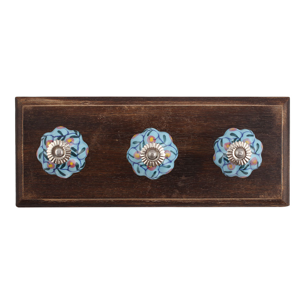 Very Berry Ceramic Wooden Hook. A Perfect Complement to the Soft Tone of the Wood are these White Traditional Hat & Coat Hook Made of Genuine Porcelain and Brass. It can be use to Hang Jewellery, Leashes, Towels, Scarves, Light Weight Sweaters, Caps Etc.