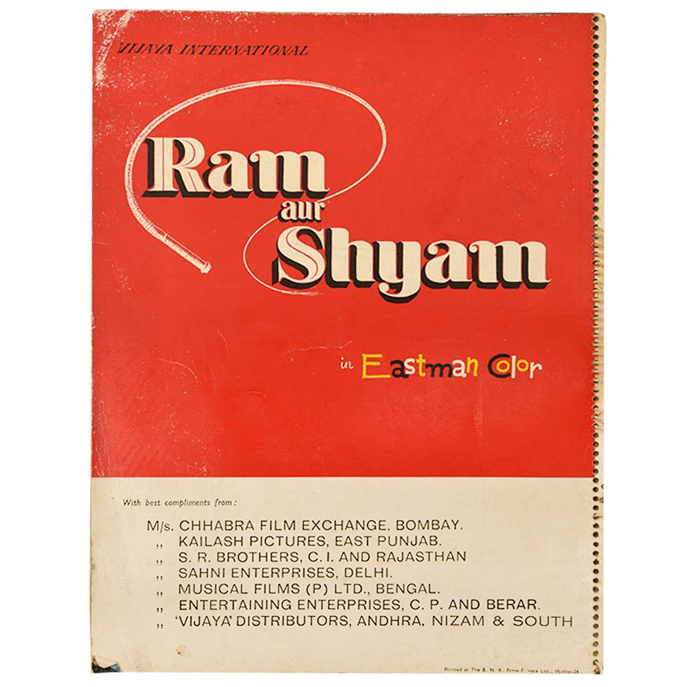 This is a movie booklet of the movie Ram aur Shyam. These types of Booklets were made for advertisements of the movies before its release time and distributed to peoples for Advertisement and promotion of the movie.It is a very colorful movie Booklet and a must for vintage movie booklet collectors.