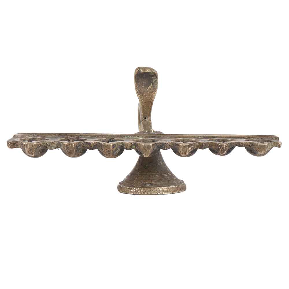 The majestic and beautiful Vintage arti lamp 7 jyots with Cobra handle promise to bring an edge to your daily prayers and morning rituals. The product is a perfect purchase for your Pooja room and helps you to seek divine blessings. The use of brass in the Vintage arti lamp 7 jyots with Cobra handle attracts positive vibrations and augment the satvika frequencies around the house. Therefore your house becomes radiant with divinity on regular usage.