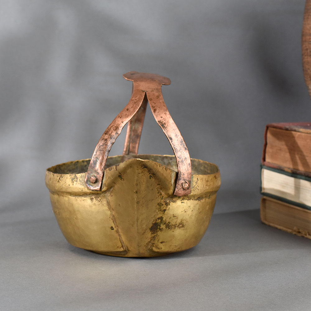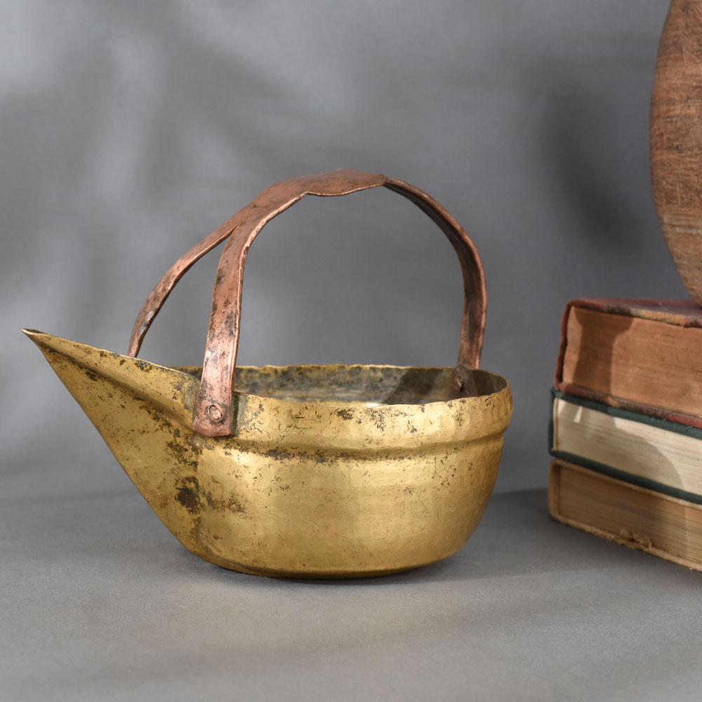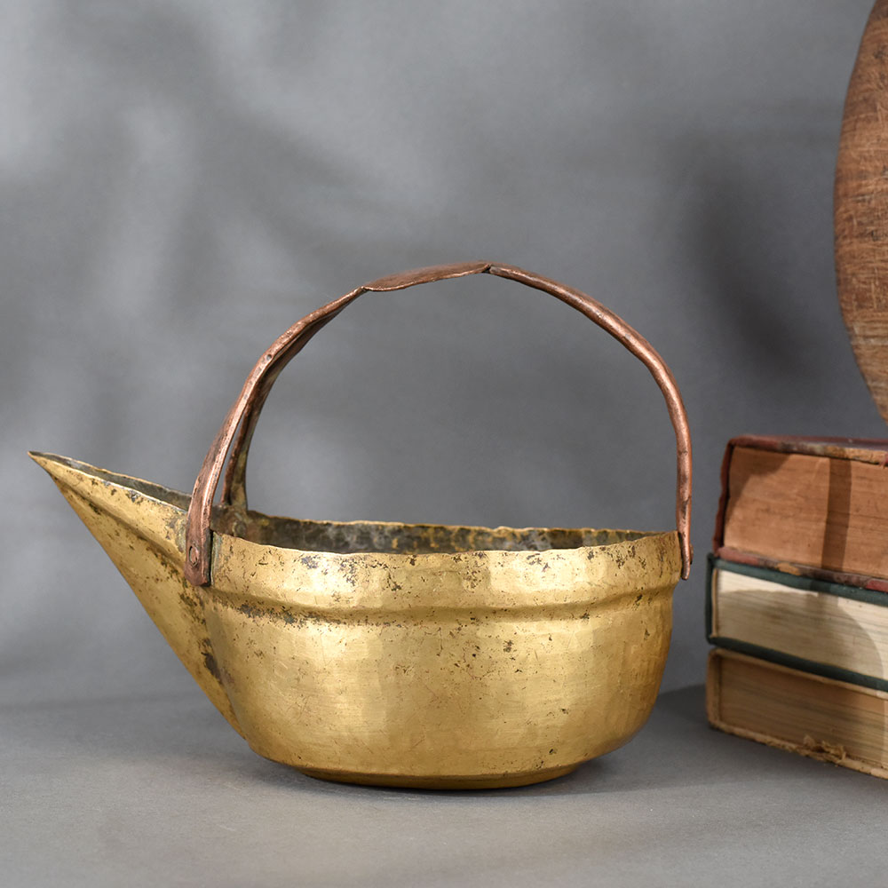 Introduce rustic elegance into your space with this Vintage Brass and Copper Serving Pot, a traditional handcrafted vessel reflecting authentic Indian heritage. This unique pot features a solid brass body with a distinct side spout for pouring and a handcrafted copper handle riveted to the rim for strength and ease of use. The naturally aged patina and hammered surface texture give it an antique character, making it perfect for use in rituals, as a water container, or as a statement décor piece in heritage-inspired settings. Its blend of metals and functional form add charm and utility to any vintage collection.