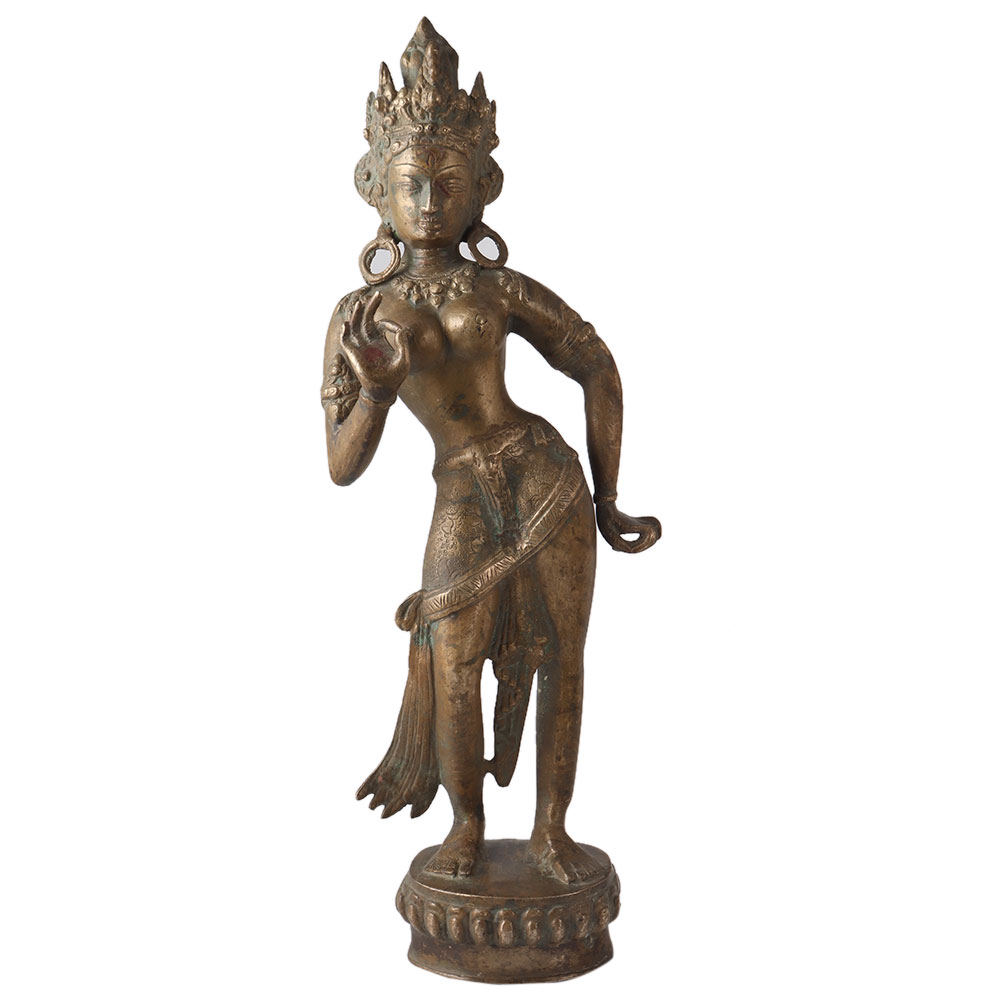 Made of high quality brass, this standing statue of Buddhist Tara is carved in Tibetan art by artisans who are highly skilled and experienced. This sculpture is crafted with intricate details that makes it a perfect piece for display and decoration on table or shelf. Exhibit this beautiful sculpture in your home to enhance the interior design of the room. Add an incredible and collectible piece to your vintage collection. An ideal gift for Diwali, wedding, anniversary or birthday occasions for your near and dear ones.