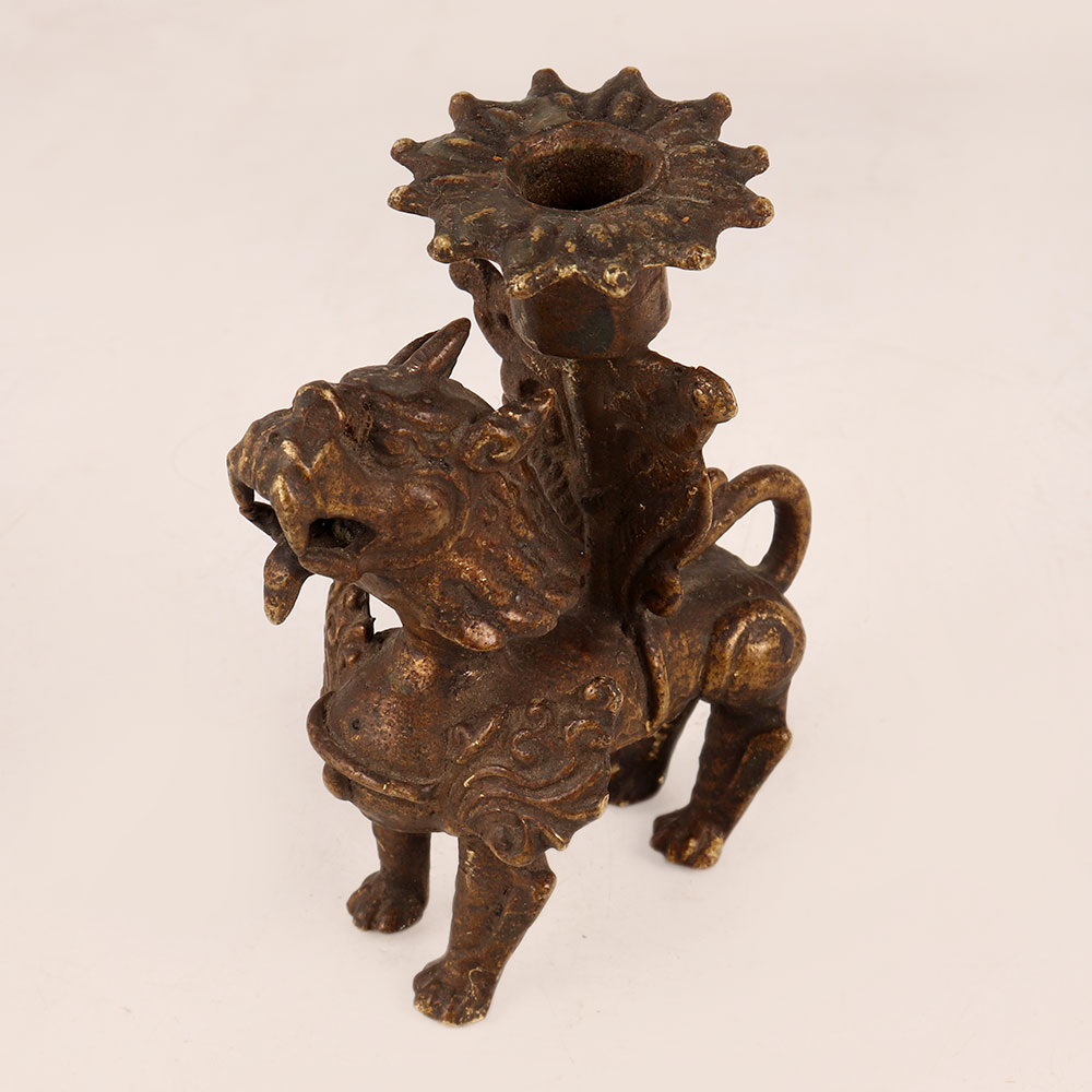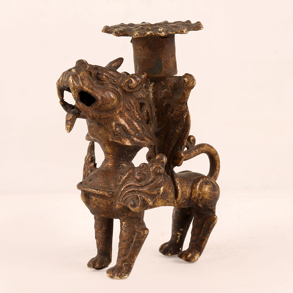 Buy a brass statue of a Chinese Lion online from our website and get a hassle free delivery at your doorstep. Meticulously crafted by professional craftsmen in the rich tradition of Chinese art, this exquisite piece boasts an antique brown finish that exudes a sense of history and sophistication. The intricate detailing captures the majestic essence of the lion, symbolizing strength, protection, and prosperity in Chinese culture. Handmade with precision, this statue is a remarkable fusion of artistry and craftsmanship. Its versatile design makes it a splendid addition to various settings – from the cosy confines of your home to the professional ambiance of your office, the inviting atmosphere of a restaurant or hotel, or the charm of a cafe or shop. Embracing both beauty and utility, this statue features a candle stand, creating a warm and inviting ambiance when illuminated. Ideal for vintage collectors, it enriches any collection with its unique cultural significance and artistic allure. Moreover, it makes for a thoughtful and meaningful gift, conveying well-wishes on special, festive, or auspicious occasions. With its captivating presence and historical resonance, the vintage brass Chinese Lion statue is a testament to the enduring appeal of timeless artistry.