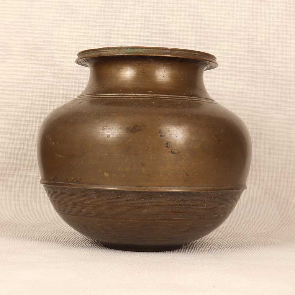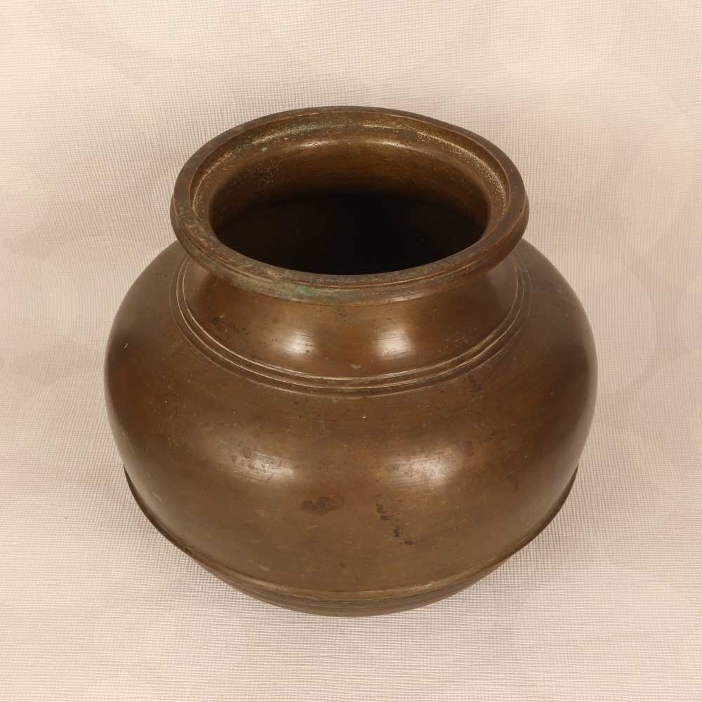 Step back in time with this authentic vintage brass cooking pot from South India. Lovingly preserved for generations, this antique pot makes a stunning decorative statement with its elegantly curved shape and intricate engraved patterns. While this cooking pot may look like a priceless antique, it has been passed down with care over the years to retain its vintage condition. Due to its age, this brass pot is recommended for decorative use only, not cooking. Fill it with your favorite blooms or display it as an artistic accent to infuse your home with exotic, antique allure. This rare find is a real treasure for those looking to add a touch of old-world charm into their living space. Let this vintage brass pot transport you back in time with its gorgeously weathered patina that adds depth, character and antique intrigue. Make a statement with this authentic piece of history.
