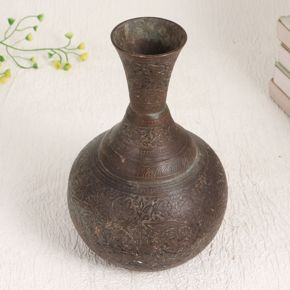 Buy a Vintage Brass Flower Pot online that is crafted in the elegant Surahi shape and adorned with intricate engravings. Handmade with precision by highly skilled Indian artisans hailing from the historic city of Hyderabad, this piece showcases their unparalleled craftsmanship and attention to detail. The antique brown finish lends an aura of timeless charm to this flower pot, making it a versatile addition to any setting. Whether you're looking to enhance your home, office, restaurant, hotel, cafe, or shop, this flower pot is the perfect choice. Its allure extends beyond mere decoration, it's a piece of art that can be proudly displayed in exhibitions or incorporated into your vintage collection. What makes this flower pot truly special is its use of high-quality brass, which not only ensures its longevity but also adds a touch of opulence to your space. This elegant piece makes for a thoughtful and meaningful gift on special, festive, or auspicious occasions, allowing you to share the beauty and craftsmanship of Indian artistry with your family, friends or relatives. Embrace the timeless beauty of this Vintage Brass Flower Pot and make a statement in your surroundings.