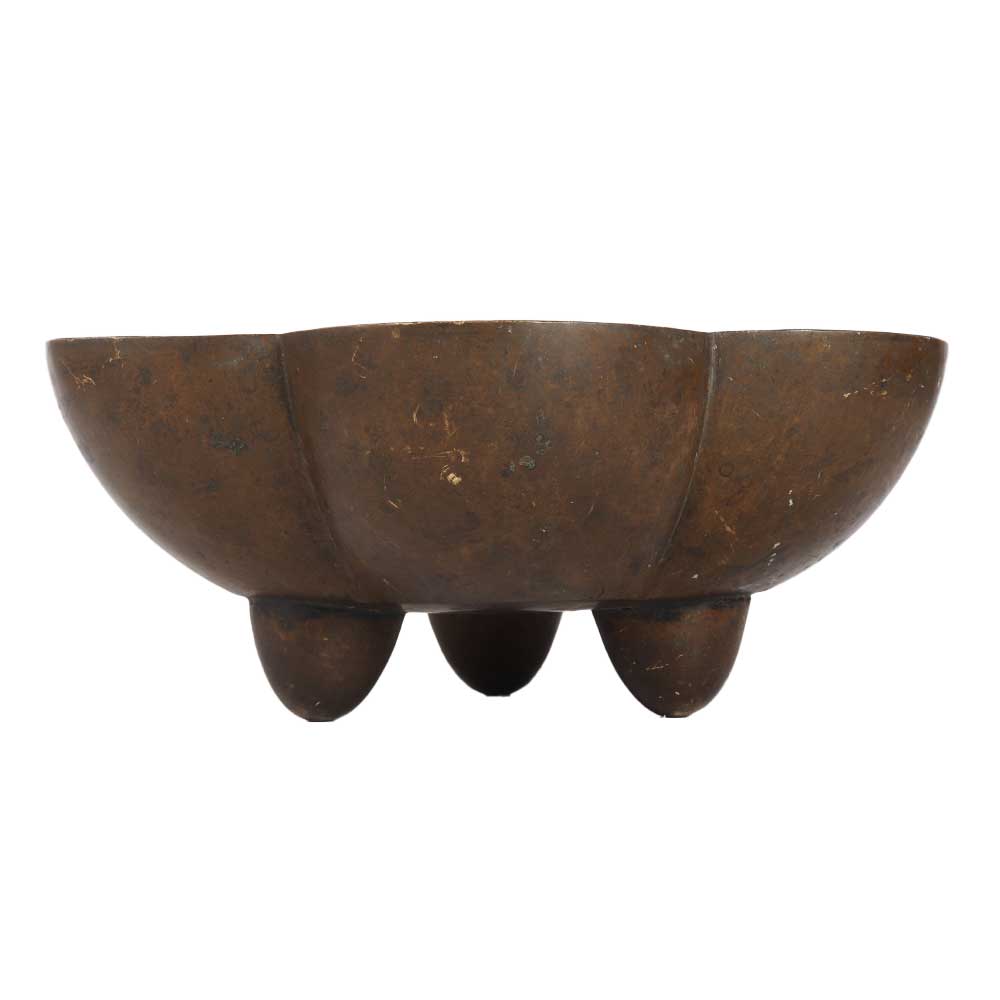 A bowl in the shape of a flower with three stands to hold it on the surface. It has an antique brown finish with beautiful floral engravings that make it eye-catching for decoration and vintage collection. A vintage brass bowl that can be used as a fruit bowl in your home, restaurant or hotel. Decorate your home with this exquisite decorative piece or display this piece in your collection or exhibition. Buy this brass bowl online that is made of the best brass to leave a long lasting impression. Being handcrafted by professional artisans from India, it adds an aesthetic touch to your home decor. Gift this brass bowl to your family, friends or relatives on special and festive occasions.