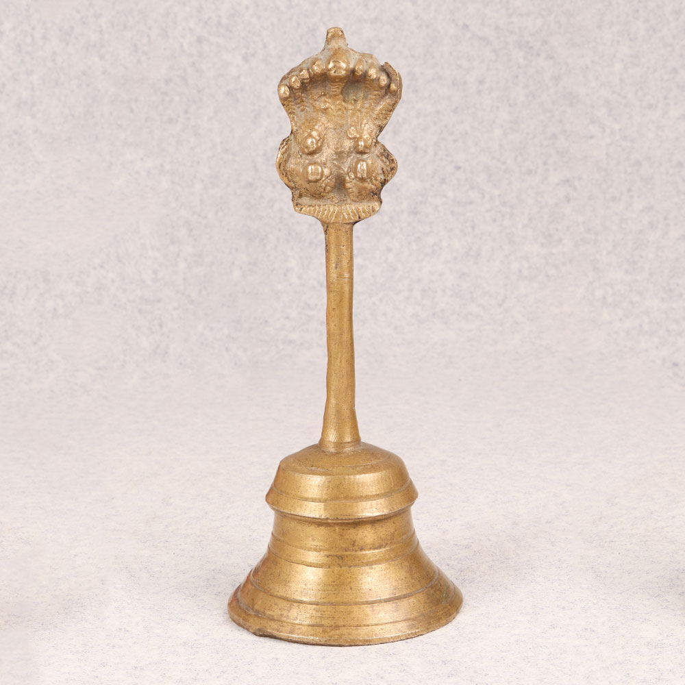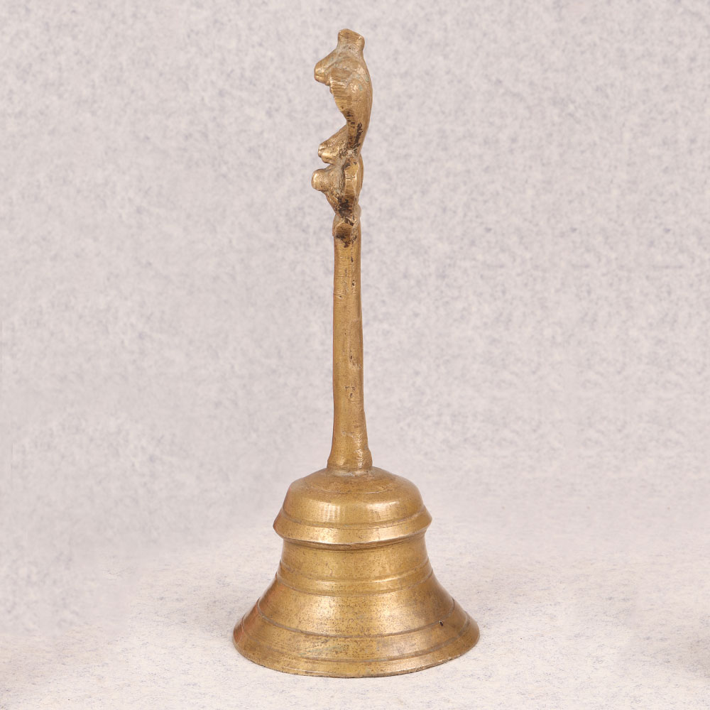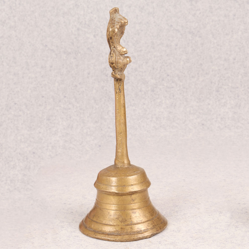 Enhance your space with the timeless charm of our Vintage Brass Bell that is a masterpiece meticulously crafted by highly skilled Indian artisans. This exquisite bell is made from high-quality brass, boasting a lustrous antique brown finish that adds a touch of sophistication to any setting. The distinctive handle ensures easy use, while the crowning glory lies in the detailed carving of Lord Garuda adorning the top. Immerse yourself in the rich cultural heritage as you place this bell in your home, office, restaurant, hotel, or café prayer room. The spiritual significance of Lord Garuda enhances the bell's aura, making it a perfect addition to your sacred space. Embrace the nostalgia and elegance of the past by incorporating it into your vintage collection. Beyond personal indulgence, this handmade brass bell serves as an ideal gift for your family, friends or relatives on special, festive, or auspicious occasions. Its symbolic value, coupled with the craftsmanship, makes it a thoughtful and meaningful present that transcends time. Embrace tradition, artistry, and spirituality with this Vintage Brass Bell that is a testament to the enduring legacy of Indian craftsmanship.