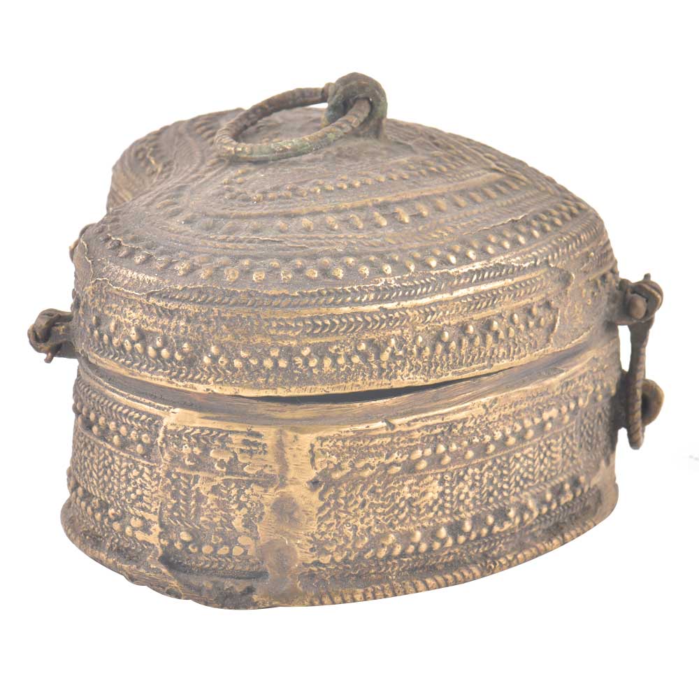 Beautiful vintage looking brass jewellry box has an ornate heart shaped pattern . Very pretty decor for the vanity or shelf Perfect for jewelry, trinkets, or what not.