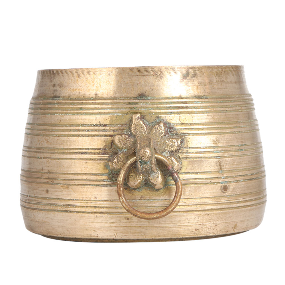 A handmade holy pot for decoration in the home, office or restaurant. This pot is made of Brass by skilled artisans with their hands. It has two handles to hold it with grip. This pot is engraved with circular rings pattern and has a flat surface. This attractive holy pot is often used as indoor flower pot in home, office, hotel or restaurant. Exhibit this decorative piece filled with water and floating flowers to beautify the indoor space. An ideal gift for festive and special occasion for your loved ones.