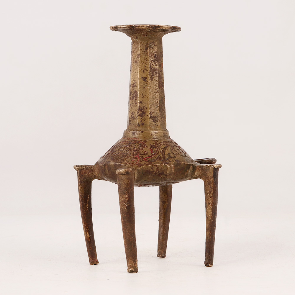 This Vintage Brass Incense Burner with four stands is a timeless piece of art crafted by highly skilled Indian craftsmen hailing from the majestic region of Rajasthan. This incense burner exudes an air of sophistication and elegance, owing to its high-quality brass construction that guarantees both durability and allure. Handmade with utmost care and attention to detail, this incense burner serves as a versatile addition to any space. Whether adorning the comforts of your home, the ambiance of an office, the luxury of a hotel, or the charm of a restaurant, it effortlessly adds an aesthetic touch to interiors, setting the mood for relaxation and tranquillity. Enhance the ambiance during special occasions and cherished moments with loved ones by filling the air with fragrant incense. This vintage brass incense burner is not only a functional delight but also an exquisite piece to cherish, making it a splendid addition to your vintage collection or a showpiece worthy of display at a museum or exhibition. What's more, this masterpiece of craftsmanship serves as an ideal gift for your loved ones on special or festive occasions, spreading the timeless allure and cultural richness of Indian heritage. Embrace the beauty and charm of this Vintage Brass Incense Burner with Four Stands, a treasure that stands the test of time and enhances every space it graces.