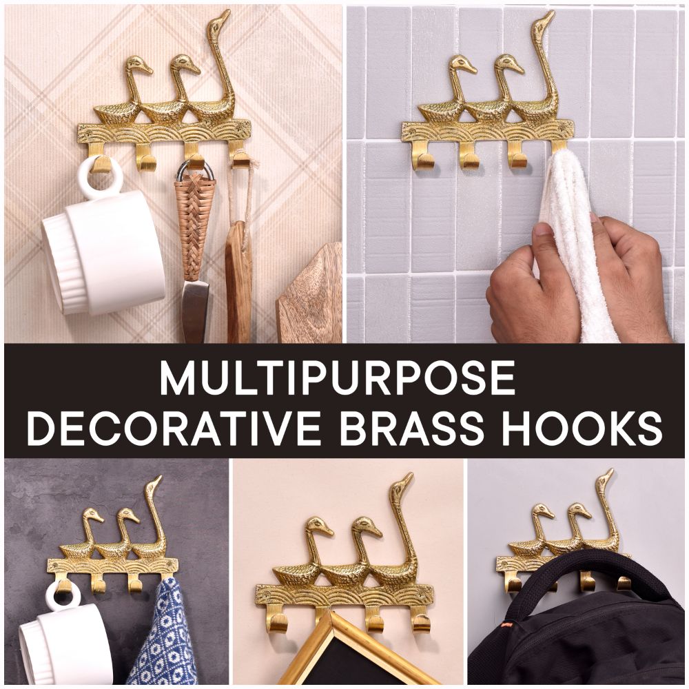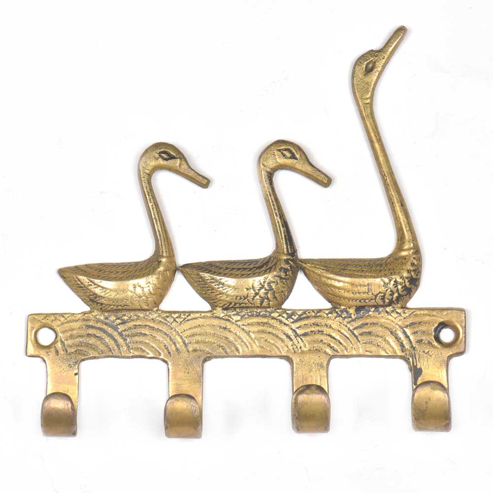 The Vintage Brass Key Holder for 4 Keys – 3 Ducks Design is more than just a key rack—it's a decorative statement that blends function with timeless charm. Made from solid brass and featuring three beautifully sculpted ducks in mid-stride, this key holder brings warmth, personality, and order to your walls. Whether you're decorating a rustic entryway or want a practical piece that doubles as art, this handcrafted brass key hook delivers both style and utility in one.