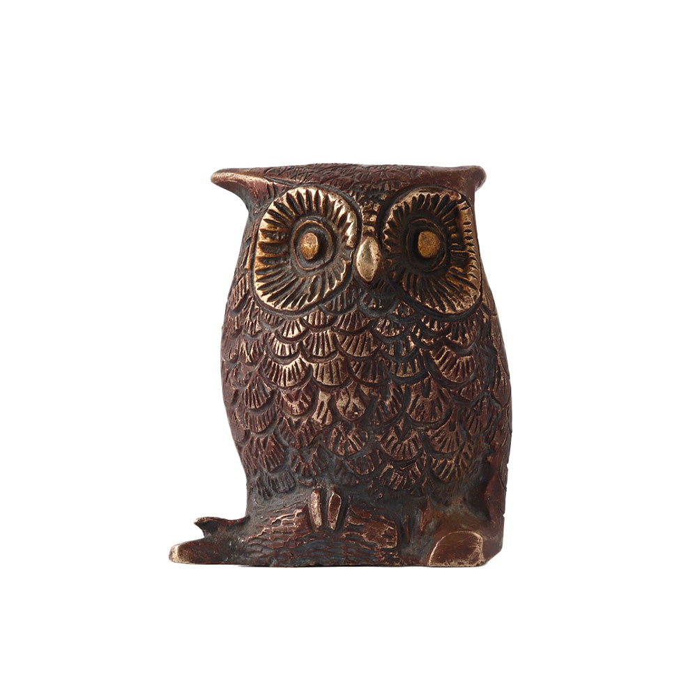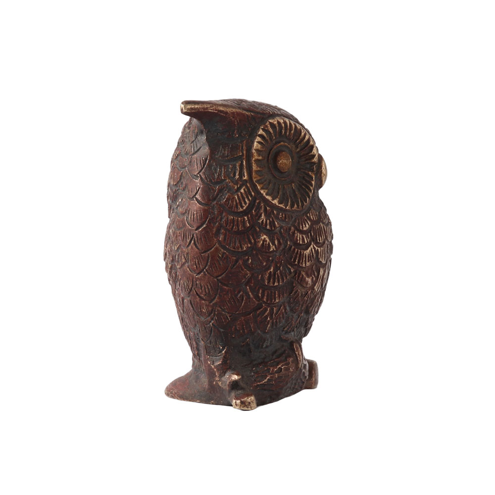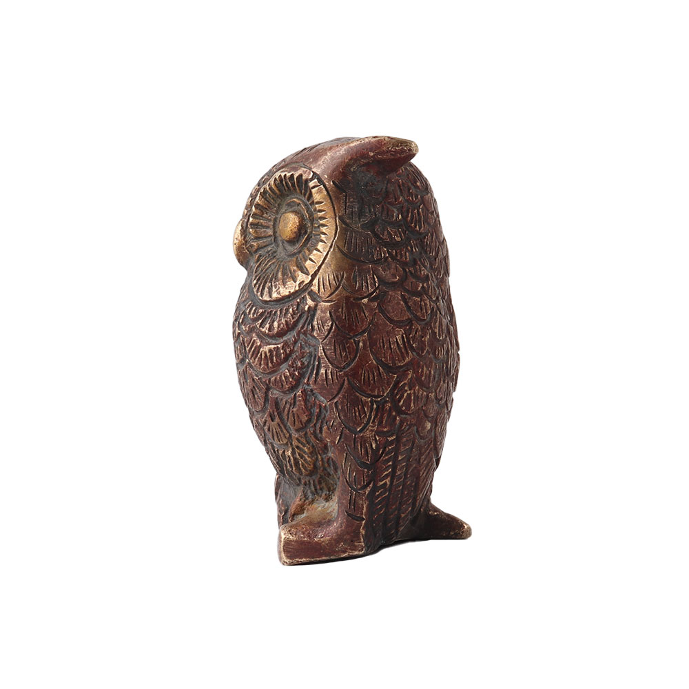 The brass owl represents intelligence, wit, mystery, and power.  Because it is a nocturnal creature, it represents inner knowledge, psychic ability, and intuition. In Feng Shui, the owl represents wisdom and protection from evil. Owl is associated with Athena, the Greek Goddess of wisdom and Sscience, due to its large eyes and exceptional night vision. Buddhists believe that the bird is a self-sufficient seeker of truth. The owl is the vehicle of Lakshmi, the Goddess of Wealth in Hinduism. Other cultures believe that the owl protects against evil spirits and illness. Keep the brass owl with coins in your home for good fortune and abundance.