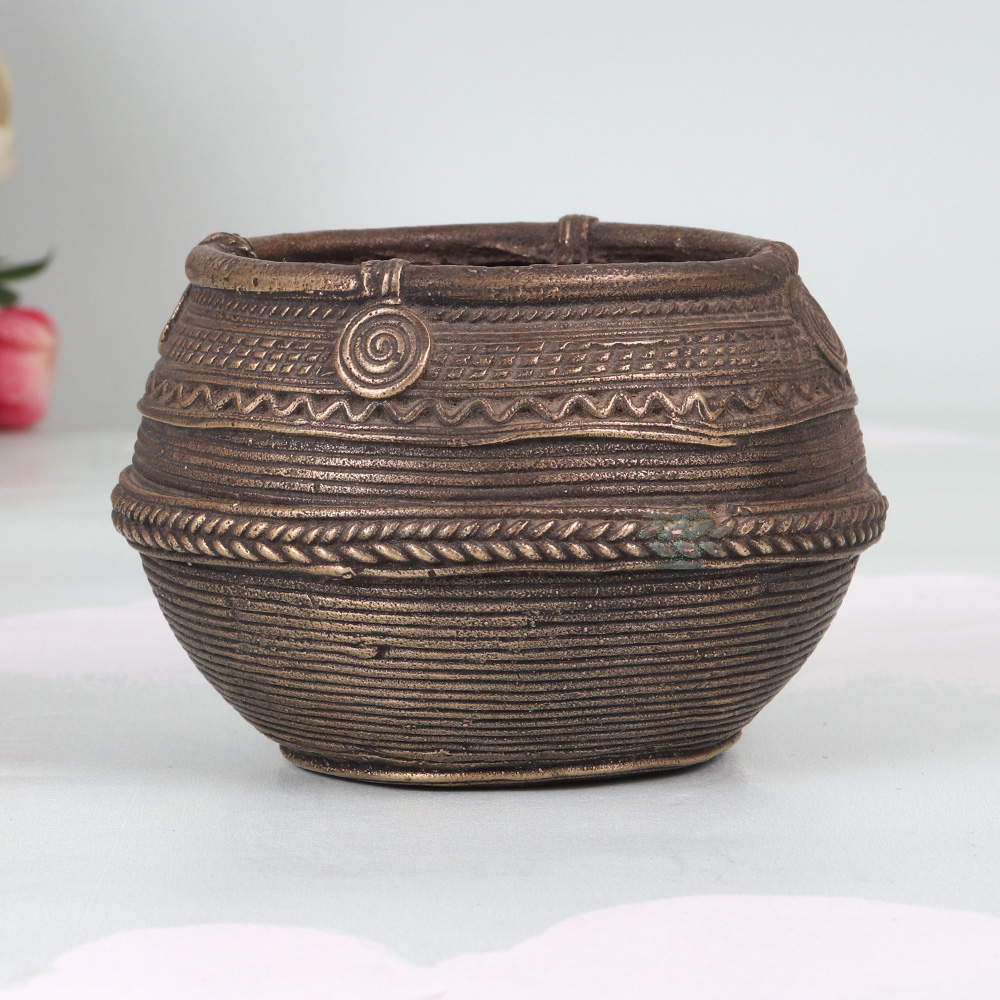 Discover the enchanting world of Odisha's culinary heritage with this exquisite vintage brass rice measurement bowl. Crafted with meticulous attention to detail, this stunning piece seamlessly blends function and artistry, inviting you to explore the rich flavors and traditions of Indian cooking. Imagine the satisfaction of measuring your ingredients with the same tools used by generations of Indian cooks. This brass bowl not only helps you achieve culinary perfection but also serves as a tangible connection to the vibrant culture of Odisha. Whether you're preparing a fragrant curry or a delicate dessert, this timeless tool will elevate your cooking experience and infuse your dishes with the essence of traditional Indian flavors. But the allure of this bowl extends beyond the kitchen. Its captivating design and warm metallic hue make it a stunning addition to any home decor. Display it on your shelves, dining table, or kitchen counter to showcase your appreciation for Odisha's rich artistic heritage. Let this vintage treasure spark conversations and inspire your guests to explore the wonders of Indian culture.