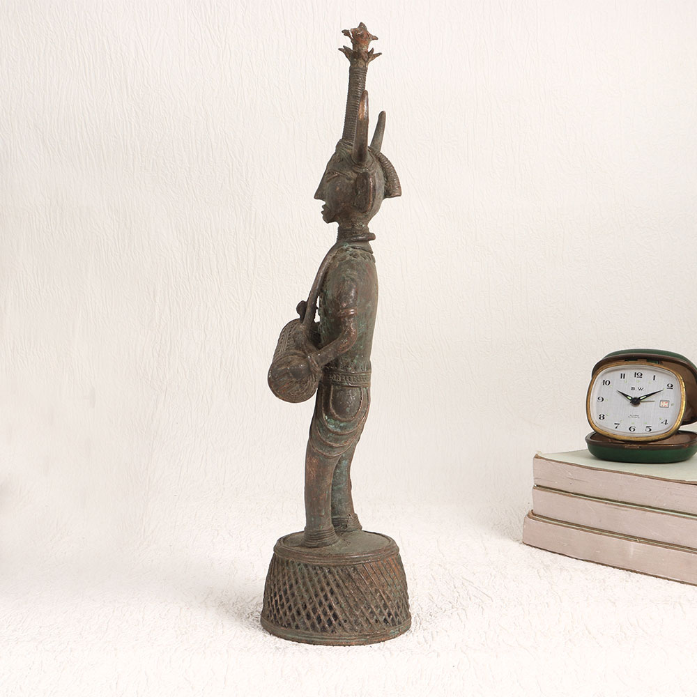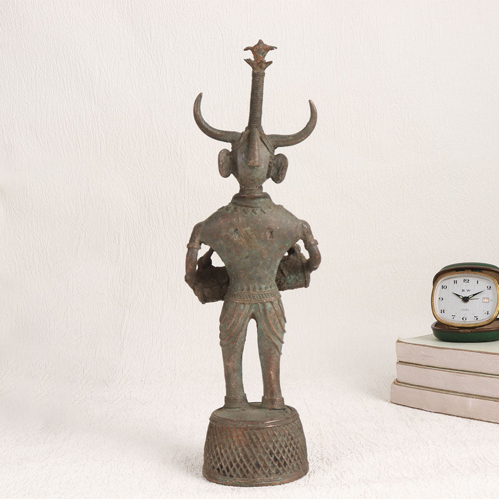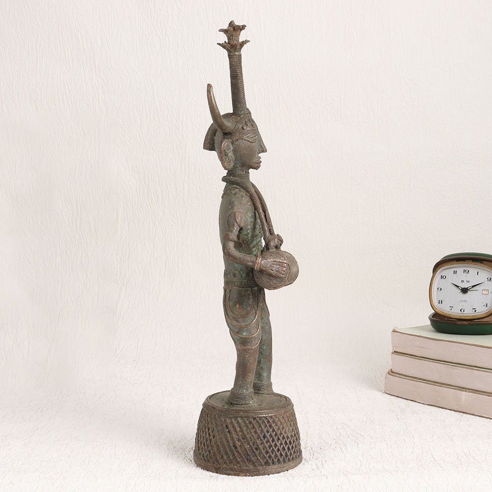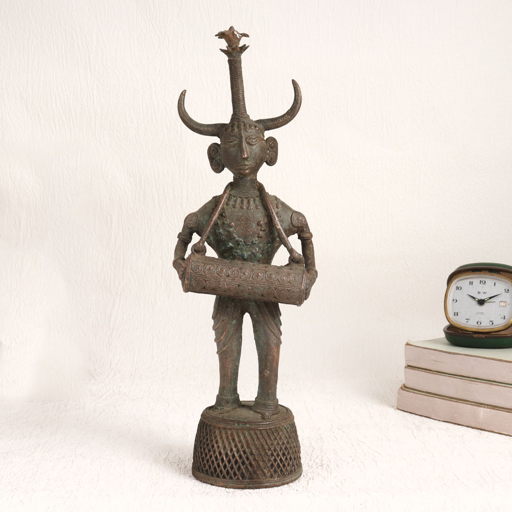 Buy a Brass Male Figure Playing Drum online and get a hassle free delivery at your doorstep. This masterpiece is painstakingly crafted by skilled Indian artisans in the enchanting region of Nagaland and is a testament to their exceptional craftsmanship. Standing proudly on a platform, this brass figure captivates with its antique brown finish, evoking a sense of timeless elegance and sophistication. Its intricate detailing showcases the meticulous care and dedication of these talented craftsmen, making each piece truly one-of-a-kind. The Brass Male Figure Playing Drum is a versatile addition to your living space, be it at home, in the office, a restaurant, hotel, cafe, or shop. Its alluring presence can elevate any setting, whether contemporary or classic, adding a touch of heritage and artistry to your surroundings. Perfect for collectors, this piece is an excellent addition to your vintage collection or a striking exhibit at an art gallery or exhibition. Additionally, it makes for an extraordinary gift, imparting a sense of tradition and luxury on special, festive, or auspicious occasions. Embrace the artistry of Nagaland and bring home a timeless treasure that celebrates India's rich heritage.
