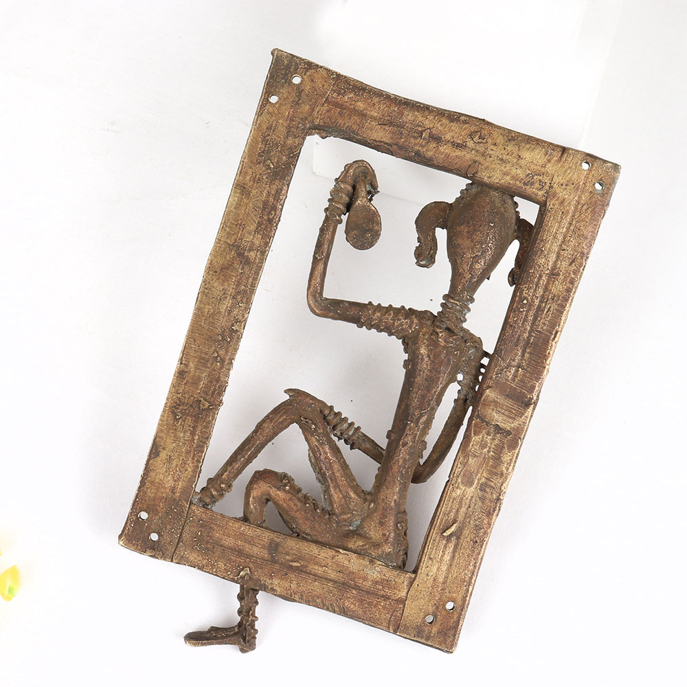 Decorate your interior with this exquisite Vintage Brass Tribal Art Man Figure that is a testament to craftsmanship and cultural richness. Handmade by professional Indian artisans specializing in Tribal Art, this unique piece boasts a stunning antique brown finish that adds a touch of timeless elegance to any space. Crafted from high-quality brass, the figure captures the essence of tribal heritage, reflecting the intricate artistry and attention to detail synonymous with Indian craftsmanship. The artisan's expertise shines through in every curve and contour, creating a captivating visual narrative. Ideal for adorning homes, offices, restaurants, hotels, or cafes, this art piece seamlessly blends tradition with contemporary aesthetics. Its versatile charm makes it a perfect addition to any setting, while its antique allure enhances vintage collections. Beyond being a statement piece, this Vintage Brass Tribal Art Man Figure serves as a thoughtful gift for your family, friends or relatives on special, festive, or auspicious occasions. Share the richness of Indian culture and the skilled artistry of its craftsmen by gifting a piece that transcends time and adds a touch of history to any space.