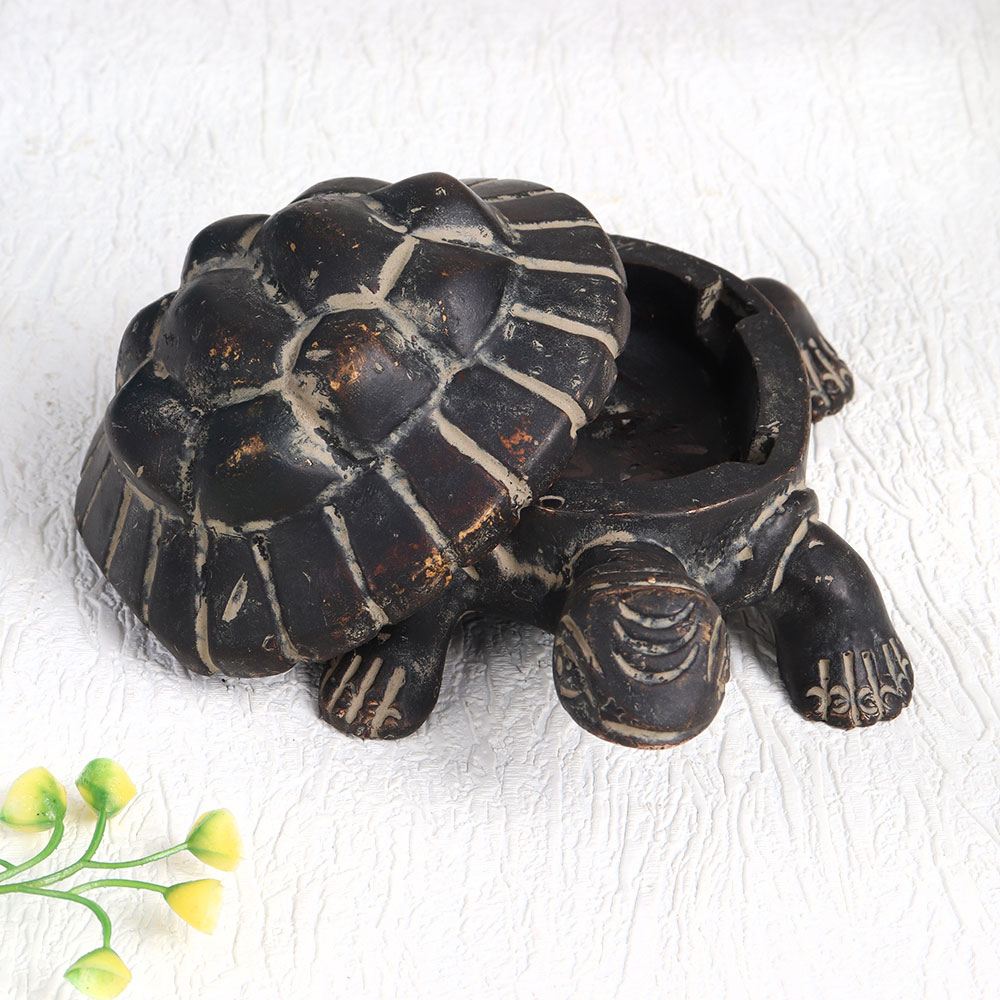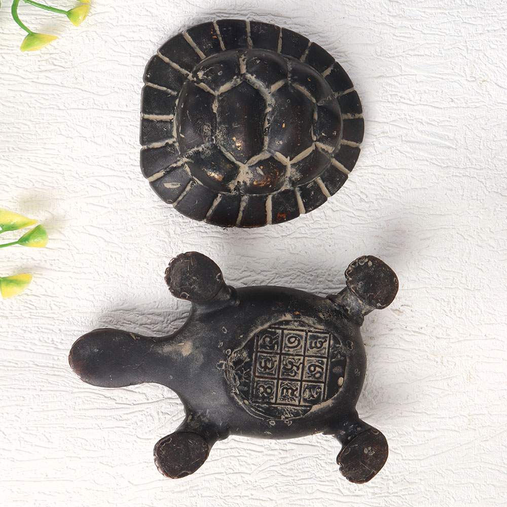 Buy a Vintage Brass Turtle Yantra online from our website and get a hassle free delivery at your doorstep. Handcrafted with meticulous precision by talented Indian artisans, this exquisite piece exudes an aura of antiquity with its rich dark finish. Forged from high-quality brass, this artisanal masterpiece serves multiple purposes, making it a versatile addition to your surroundings. At home, it transforms any space into a haven of vintage charm, infusing it with a sense of history and mystique. In an office, restaurant, hotel, cafe, or shop, it becomes a captivating focal point, drawing admirers into its intricate details. This sacred artefact is not merely ornamental, it holds the power to inspire positive energy and spirituality. Use it for prayers and meditation, allowing its spiritual essence to imbue your environment. On special, festive, or auspicious occasions, consider gifting this Vintage Brass Turtle Yantra to your family, friends or relatives. It symbolizes not just the artistry of India's past but also the enduring connection between tradition and the contemporary world, making it a truly heartfelt and meaningful gift. Elevate your space, embrace spirituality, and honour the artistry of Indian heritage with this remarkable piece of history.
