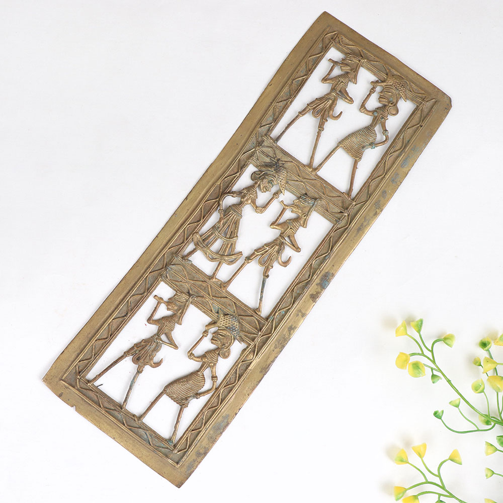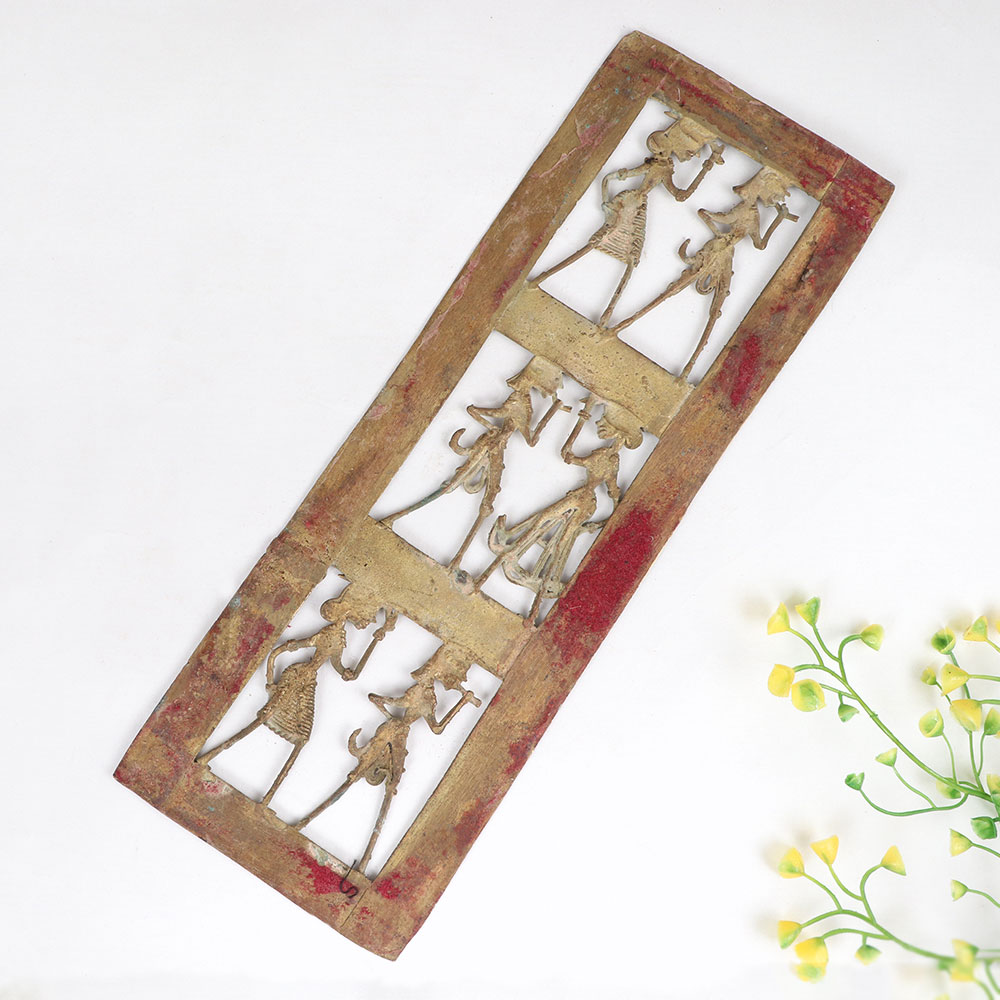 Immerse yourself in the rich cultural tapestry of Indian craftsmanship with our exquisite Vintage Brass Tribal Wall Art. Meticulously handcrafted by highly skilled artisans in Tribal Art, this captivating piece showcases an intricate jali work that transports you to a bygone era. The antique brown finish adds a timeless allure, enhancing the vintage charm of the artwork. Six figures, each engaged in the joyous act of playing musical instruments, are expertly rendered in high-quality brass. Their dynamic poses and the harmonious interplay of instruments create a visual symphony that captures the essence of tribal celebrations. This masterpiece seamlessly blends tradition with artistry, making it a versatile addition to any space. Whether adorning the walls of your home, office, restaurant, hotel, or cafe, this brass wall art effortlessly elevates the ambiance, infusing warmth and cultural significance. Ideal for collectors seeking unique vintage pieces, this artwork promises to be a standout addition. Embrace the spirit of gifting by presenting this masterpiece to your family, friends or relatives on special, festive, or auspicious occasions that is an enduring symbol of art, tradition, and shared joy.