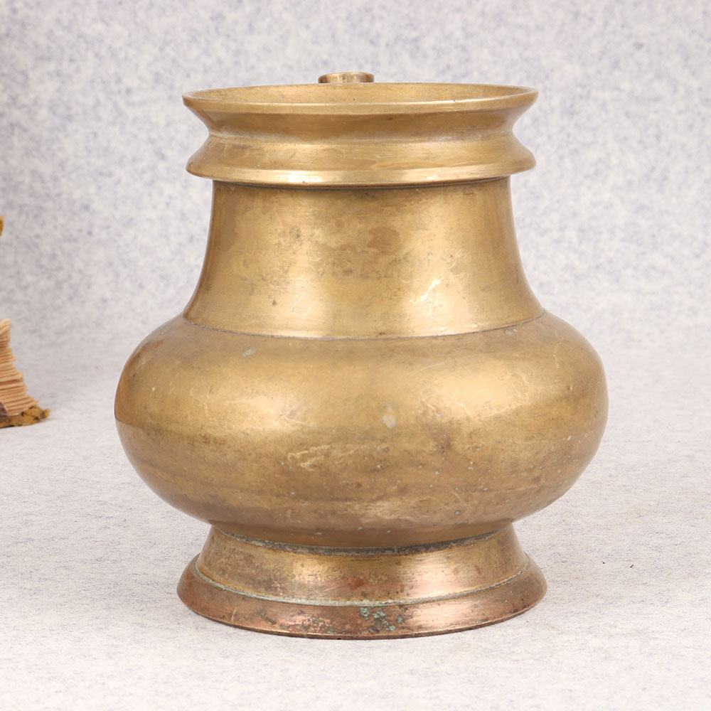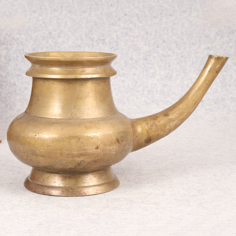 This Vintage Brass Sagar Water Pot with Spout is a timeless masterpiece meticulously handcrafted by skilled Indian artisans. Crafted from high-quality brass, this sacred vessel embodies the essence of tradition, making it an exquisite addition to any home, office, restaurant, hotel, or cafe prayer room. Its antique brown finish adds a touch of nostalgia and authenticity, creating an aura of reverence. Designed for ritual and prayer, this sagar water pot holds historical significance in temple ceremonies. Beyond its religious utility, it serves as a captivating decorative piece, effortlessly blending heritage with contemporary aesthetics. Placing this artefact in your space not only enhances the spiritual ambiance but also elevates the overall decor. The Vintage Brass Sagar Water Pot makes for a thoughtful and meaningful gift for your family, friends or relatives on special, festive, or auspicious occasions. Its antique allure and handmade charm ensure that it stands out as a cherished item in any vintage collection. Embrace the cultural heritage and spirituality embodied in this brass masterpiece, a testament to the craftsmanship and devotion of India's skilled artisans.