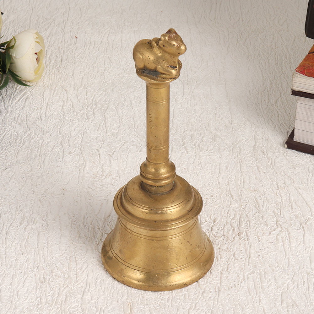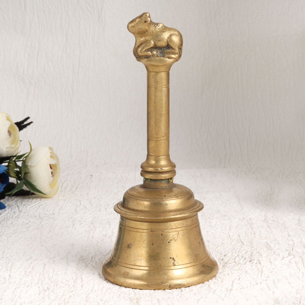 Enhance your home, office, restaurant, hotel, cafe, or shop's ambiance with our exquisite Vintage Brass Temple Bell featuring a stunning Lord Nandi handle. Handcrafted with precision by highly talented Indian artisans, this bell is a testament to their craftsmanship and attention to detail. Made from high-quality brass, it boasts an antique brown finish that adds a touch of timeless elegance to any space. Whether you're seeking a spiritual focal point for your prayer room, a decorative piece for your vintage collection, or a unique gift for your family, friends or relatives on special, festive, or auspicious occasions, this bell is the perfect choice. With its intricate design and rich symbolism, it serves both as a symbol of devotion and a captivating decor item. When rung, the melodious sound resonates with a sense of tranquillity, creating a serene atmosphere for prayer and meditation. Bring a piece of India's rich cultural heritage into your surroundings with this vintage brass temple bell, a treasure crafted with passion and dedication.
