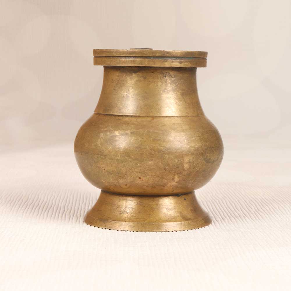 Elevate your rituals with this antique brass holy water pot. Featuring a convenient spout and intricate etchings, this pot provides a sacred vessel for your holy water. Keep holy water on hand for blessing yourself and your home with this beautifully designed pot. The pouring spout allows you to easily dispense during prayer or spiritual practice. Antique brass construction gives this pot a striking, time-honored look and feel. For spiritual seekers who want a special container for their holy water, this antique brass pot is ideal. The classic design and convenient spout help you honor tradition and connect more deeply during rituals and prayer. Bring an elevated, sacred spirit to your space.