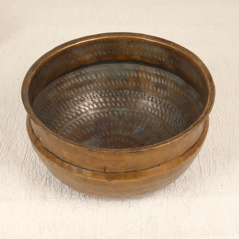 Buy a Vintage Brass Holy Pot online which is a captivating fusion of artistry and functionality. Meticulously handcrafted by skilled Indian artisans, this exquisite piece is fashioned from high-quality brass, showcasing their unparalleled craftsmanship. The antique brown finish imparts a rustic charm, invoking the allure of bygone eras. Versatile in its utility, the pot seamlessly transitions from a unique flower holder to a cherished decorative item. Its graceful silhouette and ornate detailing make it a perfect addition to any setting – be it your home, office, restaurant, hotel, or cafe. Elevate your interior with its historic allure or gift it to your family, friends or relatives on special, festive, or auspicious occasions, creating lasting memories. This vintage masterpiece not only adds a touch of sophistication to your surroundings but also serves as a conversation starter. Embrace the artistry and cultural richness embodied in this handmade creation, and let it become a cherished gem in your vintage collection.