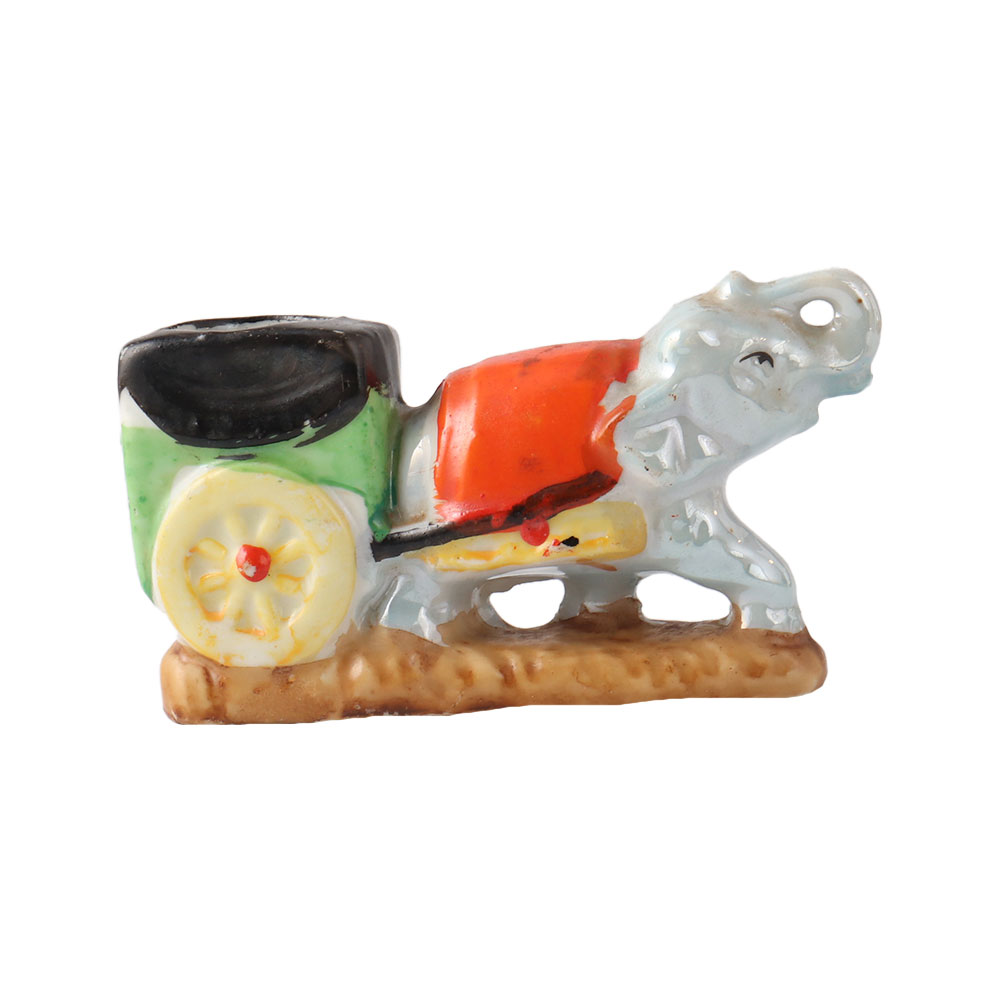 Beautifully hand-painted mid-century Elephant figure pulling a planter with vivid red and green accents while covered in a multi-coloured glazing finish. The planter/figurine is in excellent vintage shape with no chips or cracks. Use it as a gift for friends and family or for interior or outdoor decoration.