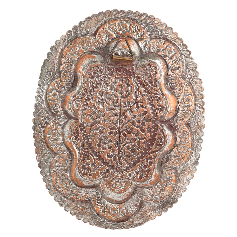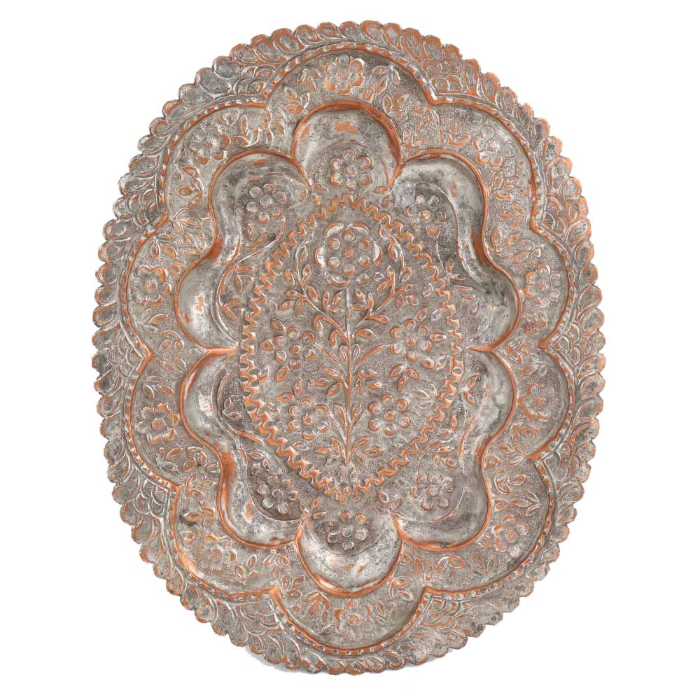 Hand engraved Copper Oval Tray with Scalloped Edges and floral foliage patterns. Wedding Gift, anniversary gift, New year gift, wall hanging for your home hotel and club house. An artistic gift for your family and friends.