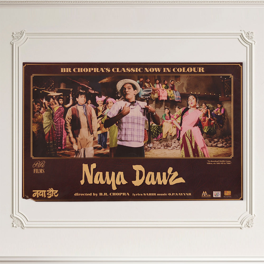 Elevate your space with the vintage charm of this Naya Daur movie print painting. Step into the world of Naya Daur, one of Bollywood's most beloved classics, with this stunning work of art. The painting masterfully recreates the film's unforgettable characters, sweeping landscapes, and timeless charm, allowing you to immerse yourself in its captivating story. Whether you're a devoted fan or simply appreciate the allure of vintage Indian cinema, this Naya Daur movie print is a must-have addition to your home. Hang it in your living room, hallway, or office to infuse your space with the elegance and nostalgia of this cinematic masterpiece. Its vibrant colors and exquisite details will transform any room, sparking conversations and evoking fond memories of this enduring Bollywood classic. Upgrade your decor and celebrate the enduring legacy of Naya Daur with this stunning, museum-quality painting. It's a beautiful way to showcase your love for Indian cinema and add a touch of vintage glamour to your living space.