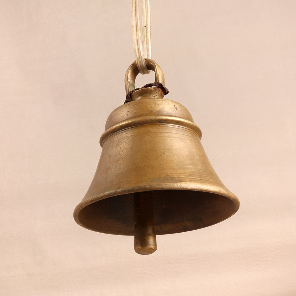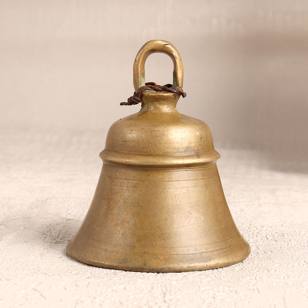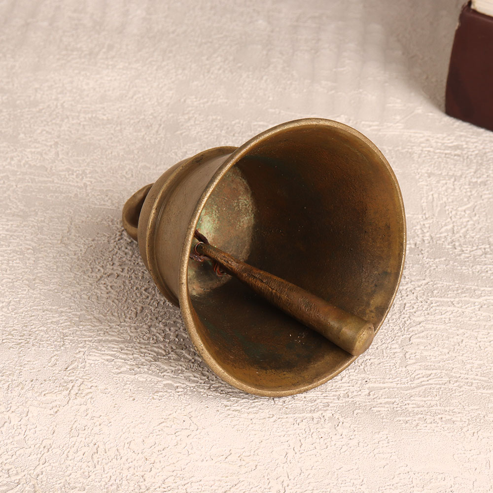 Adorn your spiritual space with the timeless charm of our Vintage Brass Temple Bell which is meticulously crafted by talented Indian artisans. This exquisite bell, cast from high-quality brass, boasts an antique brown finish that exudes an aura of antiquity and grace. Its classic design, featuring intricate detailing and a loop for easy hanging, makes it a versatile addition to any setting. Whether adorning your home, office, restaurant, hotel, or cafe prayer room, this bell transcends its functional purpose to become a cherished piece of art. The resonant chime produced by this handmade masterpiece carries a sense of tradition and tranquillity, enhancing the ambiance of your sacred space. Moreover, this vintage brass temple bell is a perfect addition to any collector's trove, offering a touch of history and culture. Share the gift of spirituality and elegance with your family, friends or relatives on special, festive, or auspicious occasions, as this bell symbolizes not just craftsmanship but also a connection to timeless traditions. Embrace the beauty of the past with this exceptional piece that resonates with history and craftsmanship.