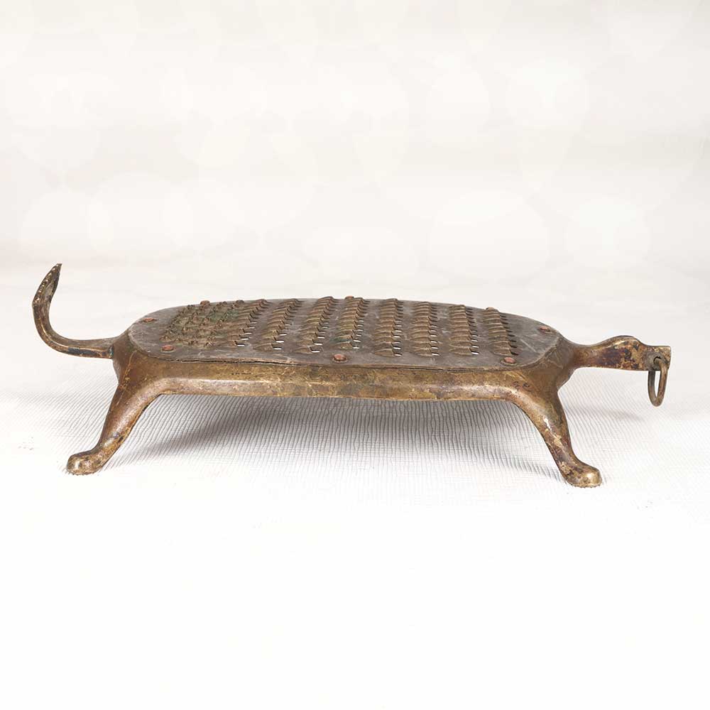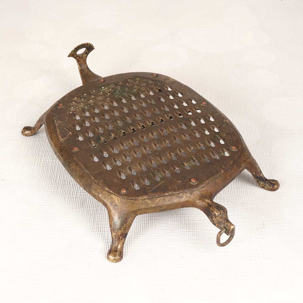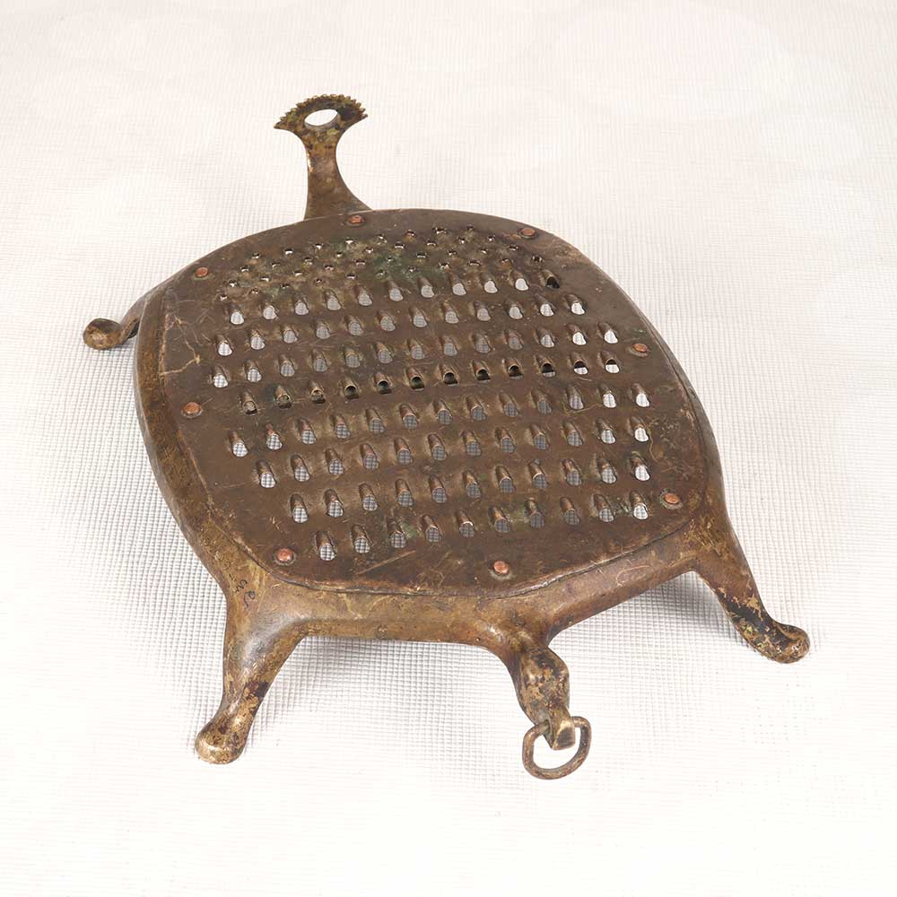 Add old-world charm to your kitchen with this antique brass vegetable grater. Beautifully aged with a vintage patina, it brings a touch of nostalgia to food preparation. The perfect gift for the chef, baker or antique lover in your life. This vintage brass grater enables them to connect with the cooking methods of past generations. Its elegance and charm adds style to any kitchen. Let it bring history and nostalgia to your food preparation.