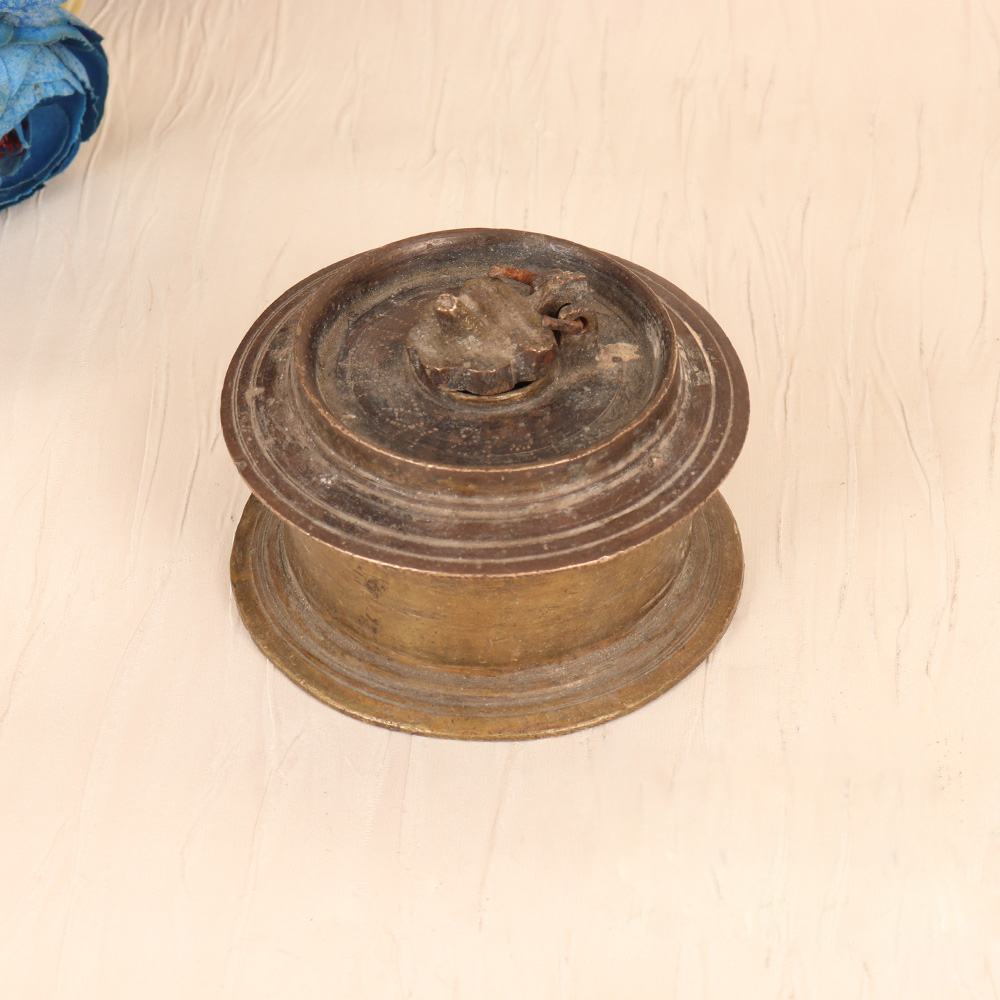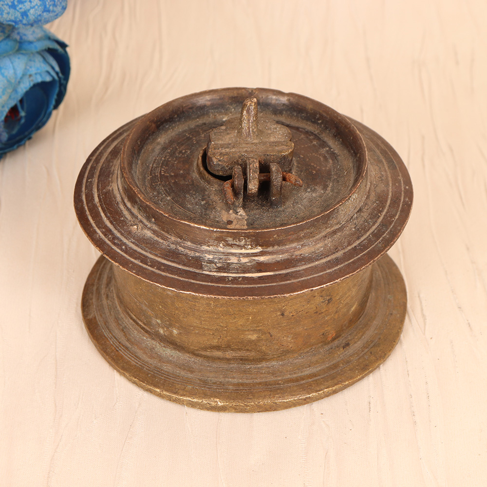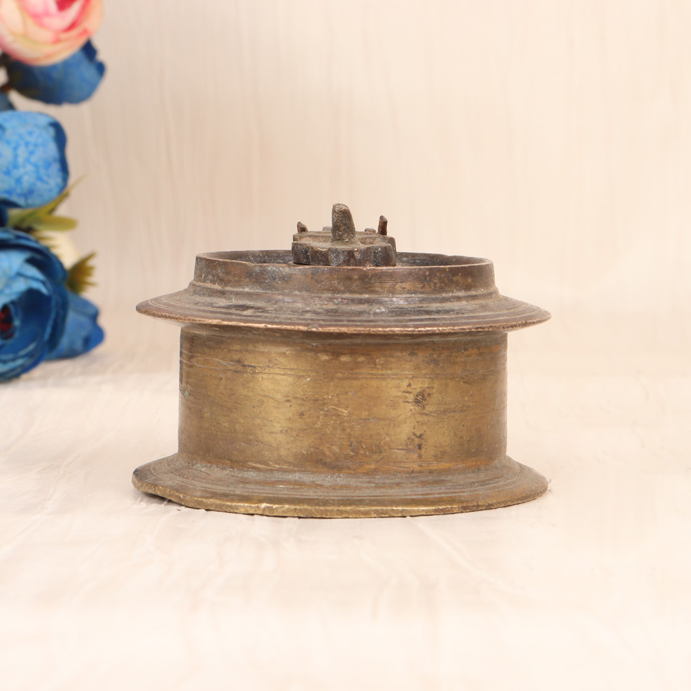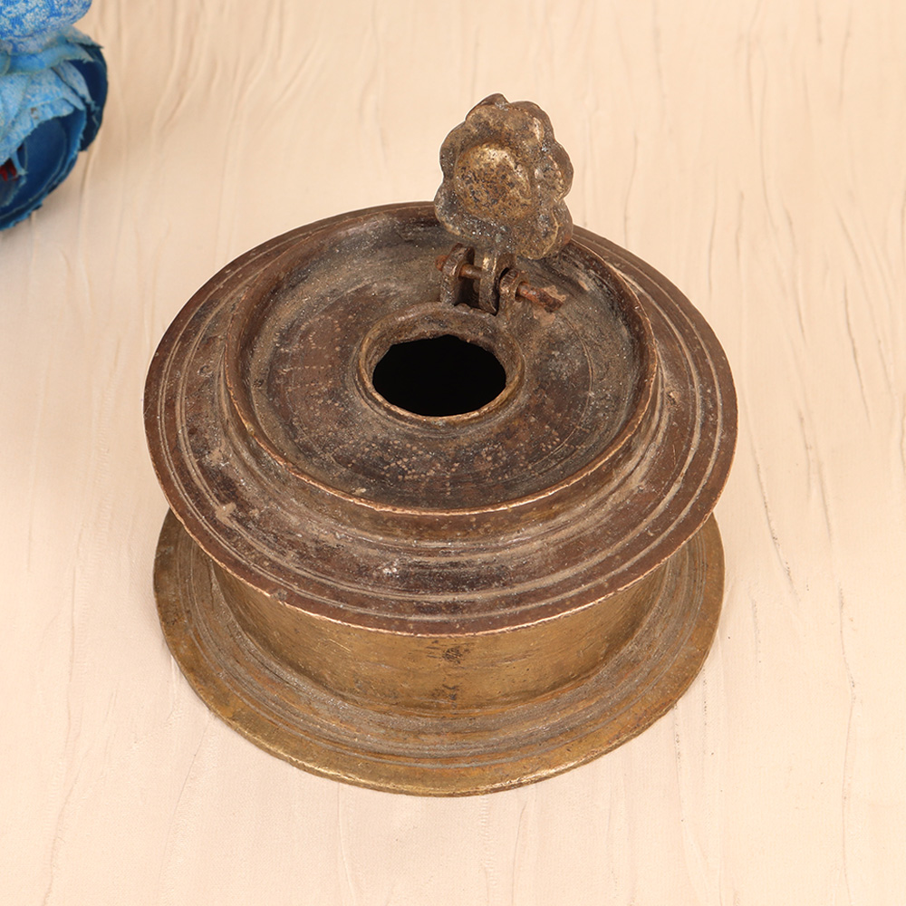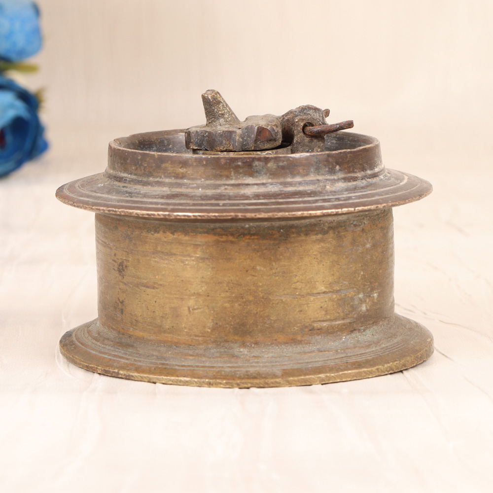 Escape the monotony of modern life and immerse yourself in the captivating allure of a bygone era with this exquisite vintage brass inkpot from Rajasthan. Crafted with meticulous attention to detail, this decorative piece seamlessly blends form and function, adding a touch of refined elegance to any space. Imagine the warm, inviting ambiance this vintage brass inkpot will bring to your home or office. More than just a decorative item, it's a testament to the enduring craftsmanship and rich cultural heritage of Rajasthan. Display it proudly on your desk, bookshelf, or entryway, and let it transport you to a world of timeless sophistication. Whether you're a vintage enthusiast, a lover of Indian art and design, or simply someone seeking to add a touch of refined charm to your space, this brass inkpot is the perfect addition to your collection. Elevate your decor and immerse yourself in the captivating allure of Rajasthan's artistic legacy.