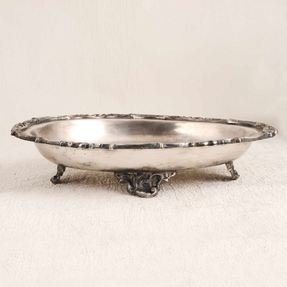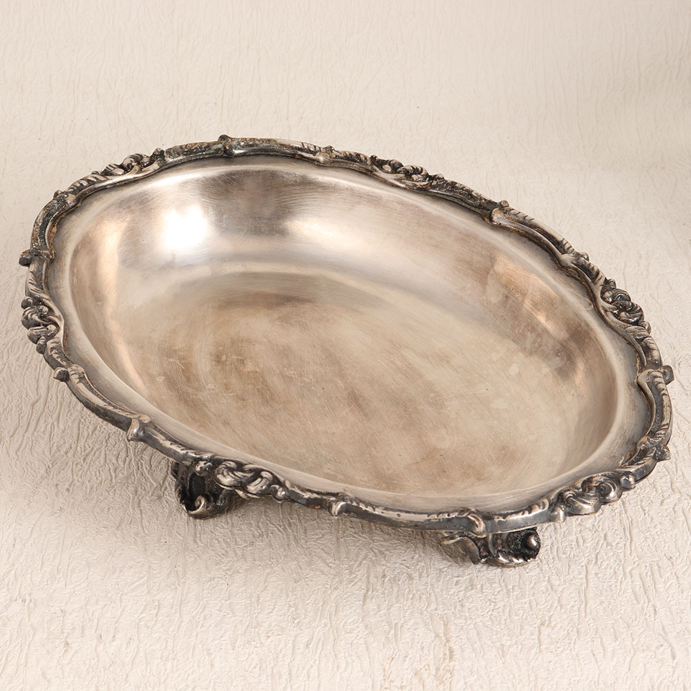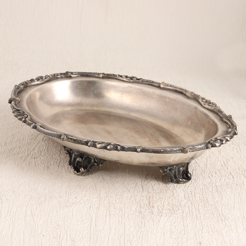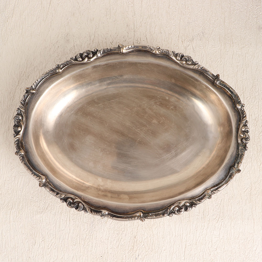 Decorate your home with a touch of timeless elegance using this exquisite vintage white metal food tray. Crafted in an oval shape, it exudes an air of sophistication with its beautiful patterns adorning the edges, all enhanced by an antique silver finish. Each tray is lovingly handmade by skilled artisans, following the centuries-old tradition of English Art. Made from high-quality white metal, this piece exudes a lustrous charm that's bound to capture attention. Its versatility is truly remarkable, as it can effortlessly grace the settings of your home, office, hotel, cafe, shop, or restaurant, adding a touch of refined luxury to any environment. Perfect for collectors of vintage treasures, this tray serves as an elegant addition to your antique collection. Furthermore, it makes for a thoughtful gift for your family, friends or relatives on special, festive, or auspicious occasions, symbolizing your appreciation for their refined taste and discerning eye for classic beauty. Let this vintage white metal food tray be a statement piece that transcends time and trends, showcasing the craftsmanship and artistry of skilled artisans.