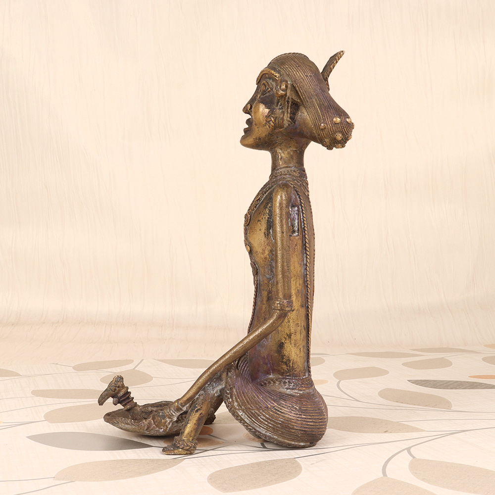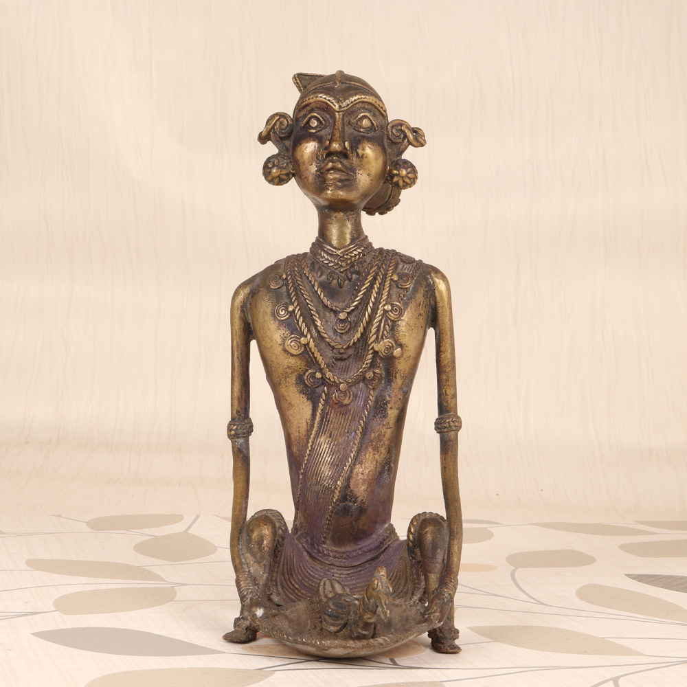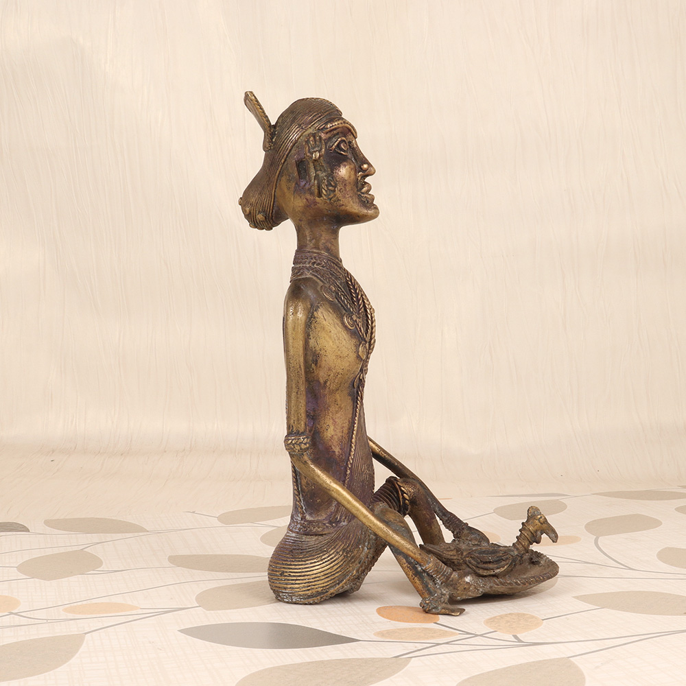 Elevate your décor with the stunning elegance of this Vintage Brass Tribal Art Lady Sitting with Bird from Bengal. This exquisite sculpture is a true masterpiece, blending intricate craftsmanship with the timeless beauty of ancient tribal art. Infuse your space with the soulful energy of the East by proudly showcasing this captivating brass sculpture. The serene, meditative pose of the lady figure and the graceful presence of the bird create a sense of tranquility and cultural richness. Whether you're decorating a living room, office, or meditation space, this tribal art piece will instantly elevate the ambiance with its timeless beauty. More than just a decorative accent, this vintage brass sculpture is a celebration of the vibrant artistic traditions of Bengal. It makes a stunning conversation starter and can inspire moments of reflection on the wisdom and artistry of ancient cultures. Bring the beauty and elegance of the East into your home with this truly remarkable work of art.