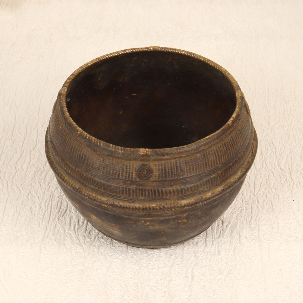 Buy a Vintage Brass Rice Measurement Bowl online and get a hassle free delivery at your doorstep. Handcrafted by highly skilled artisans from the enchanting region of Odisha, this bowl is a testament to the timeless artistry and craftsmanship passed down through generations. Fashioned from high-quality brass, the bowl boasts an antique brown finish that exudes an aura of authenticity. The intricate engravings on its surface tell stories of tradition and lend a unique character to this piece. Originally used for measuring rice in traditional households, this vintage bowl now serves as a captivating decorative item that can enhance the aesthetic appeal of your home, office, restaurant, hotel, or cafe. Given its age and historical significance, we recommend this bowl primarily for decorative purposes. It is a charming addition to any vintage collection, offering a glimpse into India's cultural past. Moreover, it makes for a thoughtful and unique gift for your family, friends or relatives on special, festive, or auspicious occasions, allowing them to cherish the beauty of Indian craftsmanship and history. Embrace the charm of yesteryears with this meticulously crafted vintage brass bowl.