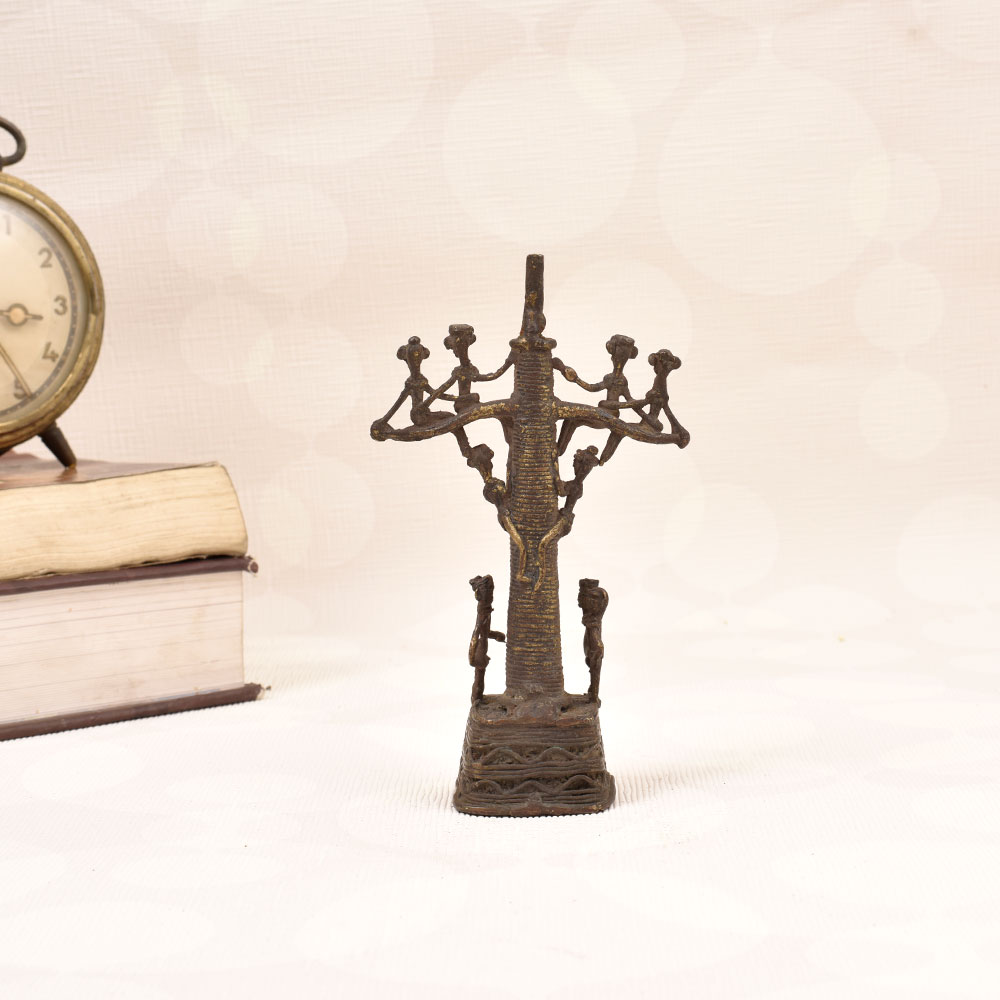 Looking to add a touch of global flair to your home or office? Introducing our Vintage Brass Tribal Art Stand - a captivating piece that celebrates the rich cultural heritage of tribal artistry. Crafted with meticulous attention to detail, this stunning stand features nine intricately sculpted brass figures, each one a unique work of art. This one-of-a-kind stand is more than just a decorative accent - it's a gateway to a world of cultural exploration. Imagine placing it on your living room console, where the flickering light will cast mesmerizing shadows and bring the figures to life. Or let it take center stage on your office bookshelf, sparking conversations and inspiring colleagues to broaden their horizons. Whether you're an avid collector of global art and artifacts or simply seeking to infuse your space with a touch of tribal elegance, this Vintage Brass Tribal Art Stand is a must-have. Elevate your décor and immerse yourself in the captivating beauty of time-honored craftsmanship. Make this stunning piece the centerpiece of your home or office today.