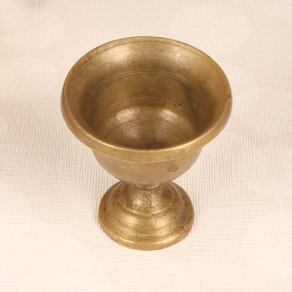 Add a touch of vintage elegance to your prayer space with this intricate brass kumkum cup. Lovingly hand-engraved with traditional Indian designs, this cup brings spiritual meaning to your rituals. As you gently pinch vibrant kumkum powder for your tilak, this cup helps transport you to a peaceful state of mind. The engraved symbols represent Indian culture, while the brass material signifies purity and auspiciousness. Use the cup to hold sandalwood paste or sacred ash too. Bring a meaningful, spiritual touch to your puja with this vintage handcrafted brass kumkum cup. The designs connect you to tradition with each use.