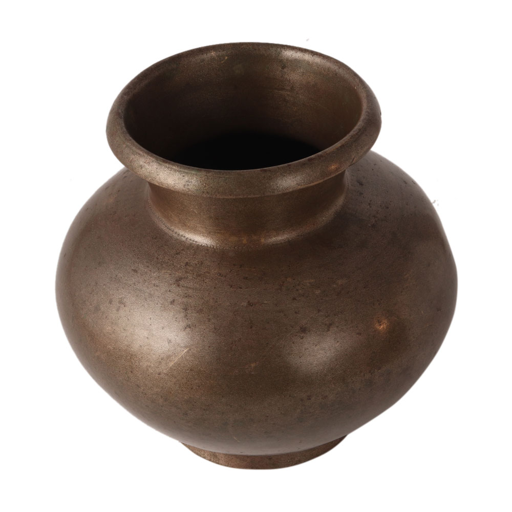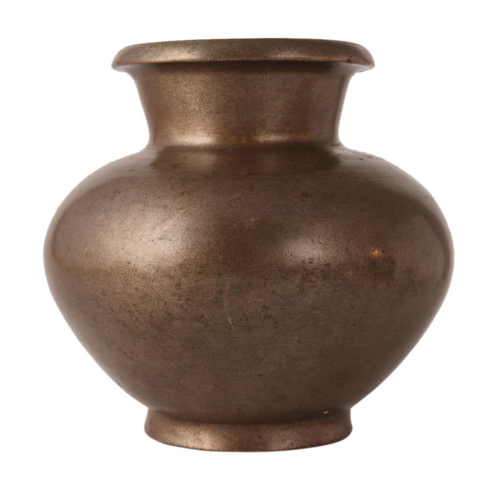 This plainly designed Gangajal water lota or pot is made of bronze. It has a dark brownish colour that makes it look sturdy. A treat for vintage collectors.