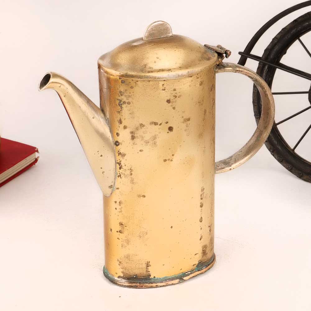Step back in time with this vintage brass kettle, a true testament to the artistry of a bygone era. Crafted with precision and passion, this masterpiece features a lid and a gracefully curved spout, evoking memories of leisurely tea times and the joy of communal gatherings. Originally designed to hold tea and water, it now stands as a stunning decorative piece, oozing with nostalgia and charm. Handmade by professional artisans in the English Art style, this kettle showcases the beauty of finest-quality brass, adorned with a captivating golden finish that exudes elegance. Its historical significance and unique craftsmanship make it a cherished addition to any space. Perfectly versatile, this vintage kettle finds its place in various settings. Whether placed in a cosy home, a sophisticated office, a charming restaurant, an opulent hotel, or a cosy cafe, it adds an aura of refined antiquity to the ambiance. It also serves as a delightful exhibit in themed displays or vintage collections. Ideal for commemorating special, festive, or auspicious occasions, this brass kettle makes for a thoughtful gift, allowing your loved ones to relish the enchantment of a bygone era. Embrace the nostalgia, celebrate the craftsmanship, and cherish the allure of this timeless vintage brass kettle.