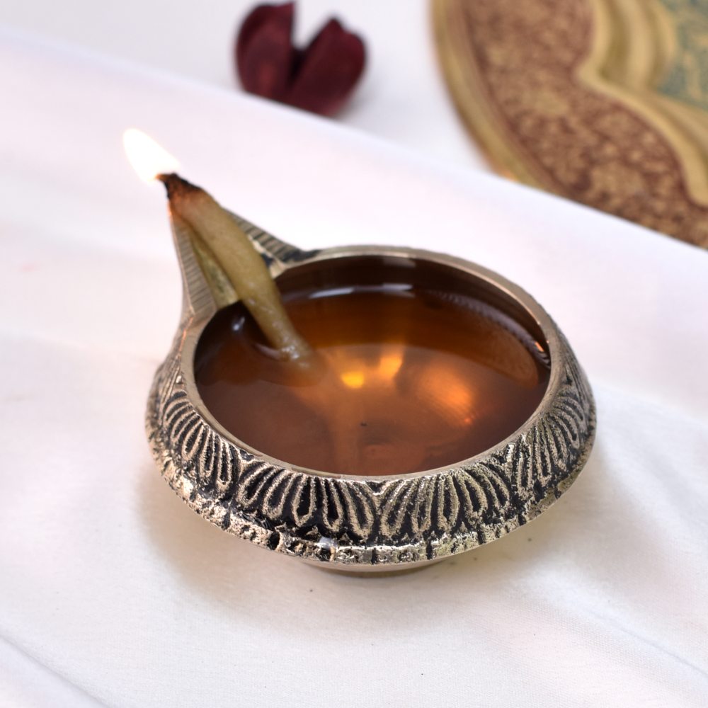 Add a touch of timeless elegance to your celebrations with this Vintage Golden Brass Lamp Diya. Crafted from pure brass with a warm golden hue, this diya embodies tradition and heritage while being compact and versatile. Its vintage-inspired form makes it an ideal choice for Diwali rituals, home temples, and decorative arrangements.