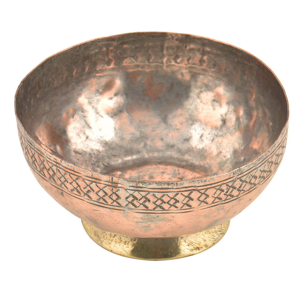 • Vintage Hand Engraved Cross Pattern On Rim Copper Bowl
