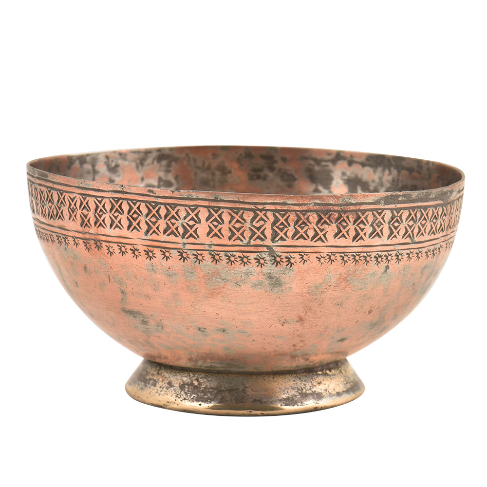 The Hand Engraved Copper Bowl is a Beautifully Unique Piece Complete with a Hammered starry sun Pattern Design. The Perfect Addition to Any Set or Your Home Kitchen Decor. It has islamic patterns on the top rim of the bowl. The perfect addition to any set or your home kitchen decor.