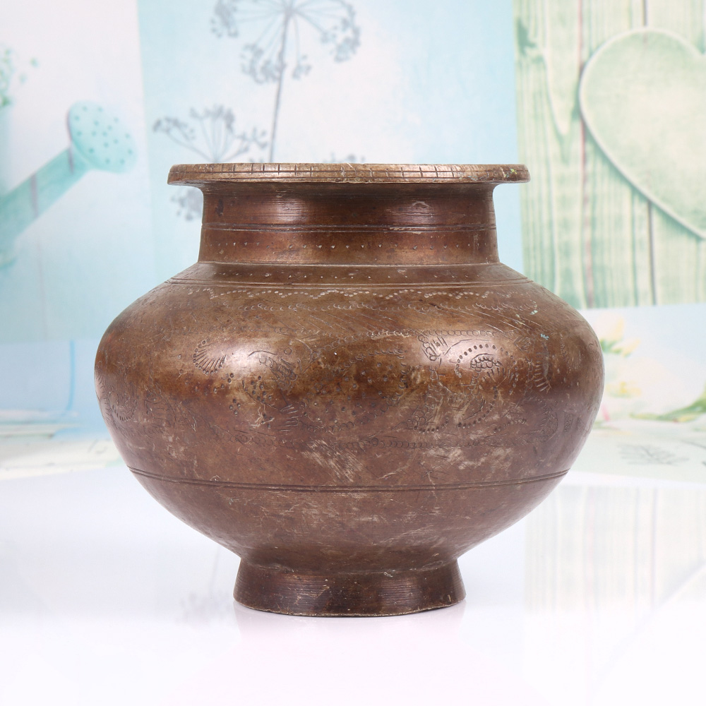 Elevate your sacred rituals and infuse your living space with a captivating sense of tradition and devotion. Introducing the exquisite brass holy water pot, meticulously crafted by skilled artisans in the vibrant state of Gujarat, India. This vintage vessel, adorned with intricate carvings, is a true testament to the enduring art of spiritual practice. Bring the rich cultural heritage of Gujarat into your home and create a serene, sanctuary-like atmosphere. Whether you're performing puja, cleansing your space, or seeking a stunning decorative accent, this brass holy water pot will become a cherished part of your spiritual journey. Unlock the transformative power of ritual and let this magnificent vessel inspire a deeper connection to the divine. Elevate your daily routines, enhance your meditation practice, and infuse your living space with the sacred energy that radiates from this timeless piece. Invest in a true work of art that will not only elevate your spiritual practice but also serve as a stunning visual centerpiece in your home. Experience the beauty and significance of this brass holy water pot and let it become a beloved part of your spiritual sanctuary.