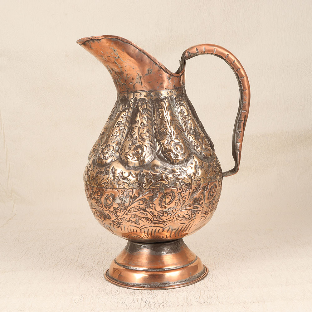 Step back in time with this antique-inspired copper jug featuring the mesmerizing patterns of Islamic art. With its exotic engravings and elegant shaping, this copper jug infuses any space with an alluring taste of the mystical Orient. Those who love statement pieces with artisanal appeal will be drawn to its imaginative motifs and warm, glowing finish. Let this jug's old-world charm transport your home decor to an alluring bygone era.