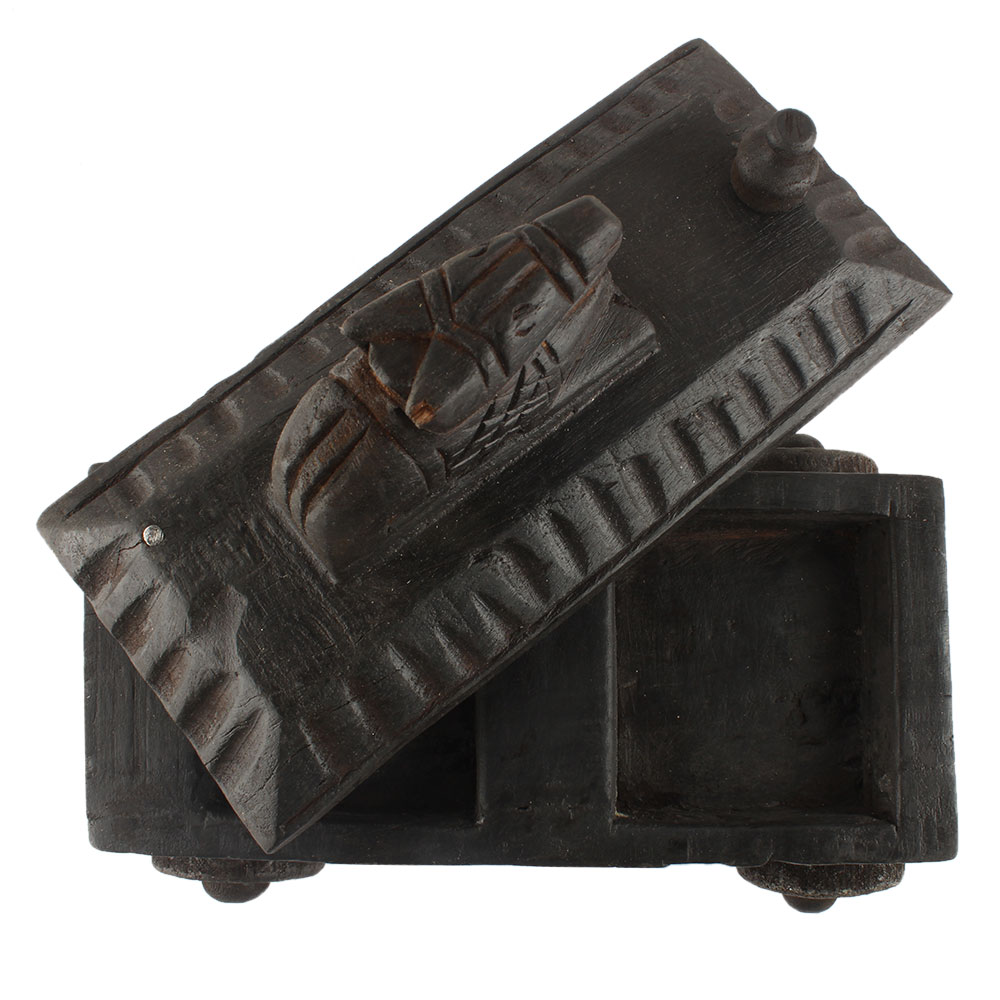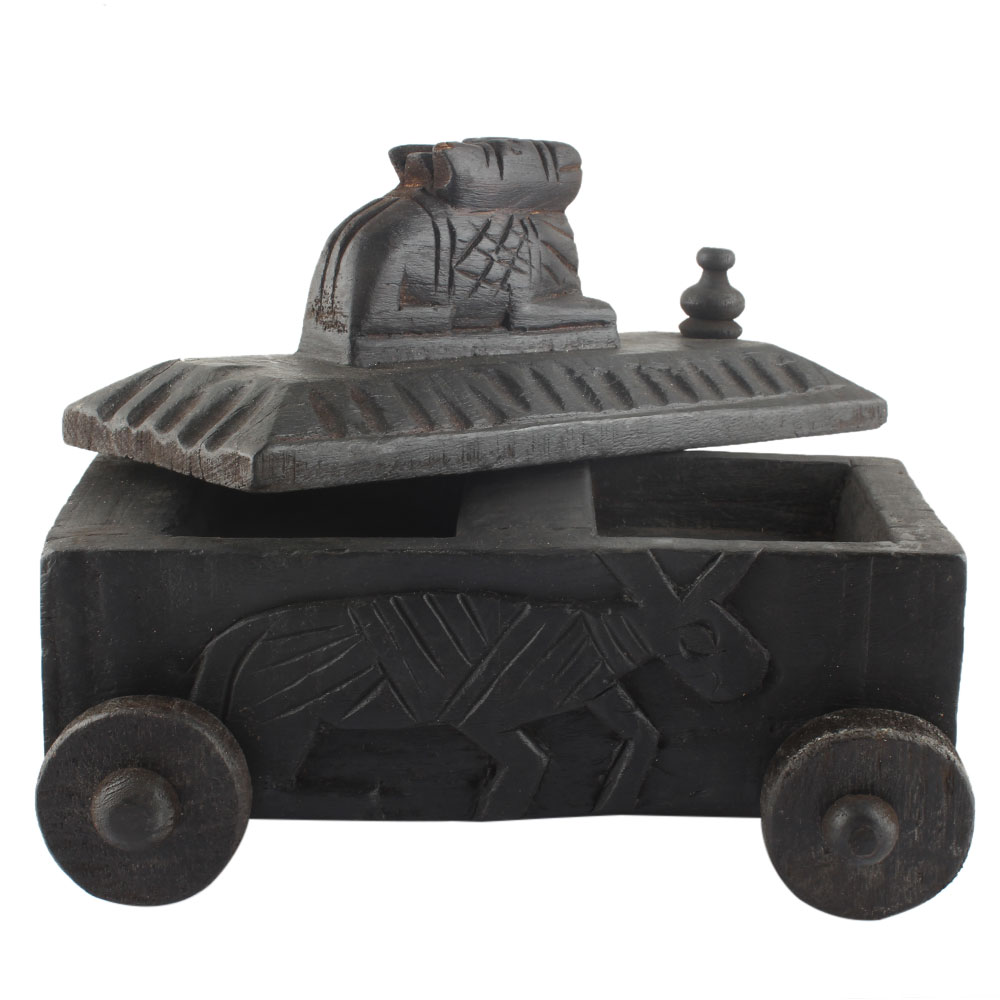 Vintage Handcrafted Old Nandi Wooden Spice Box Masala Dabba Spice Box. Ceramic Drawers in Wooden Frame. The Spice Boxes are designed with different patterns. These boxes are made using natural wood which does not harm the purity of spices.