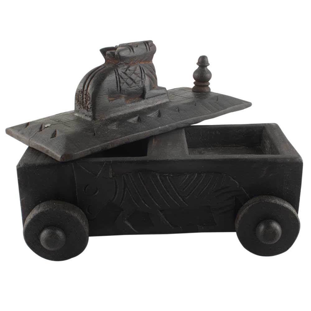 Vintage Handcrafted Old Nandi Wooden Spice Box With Wheels. Ceramic Drawers in Wooden Frame. The Spice Boxes are designed with different patterns. These boxes are made using natural wood which does not harm the purity of spices.