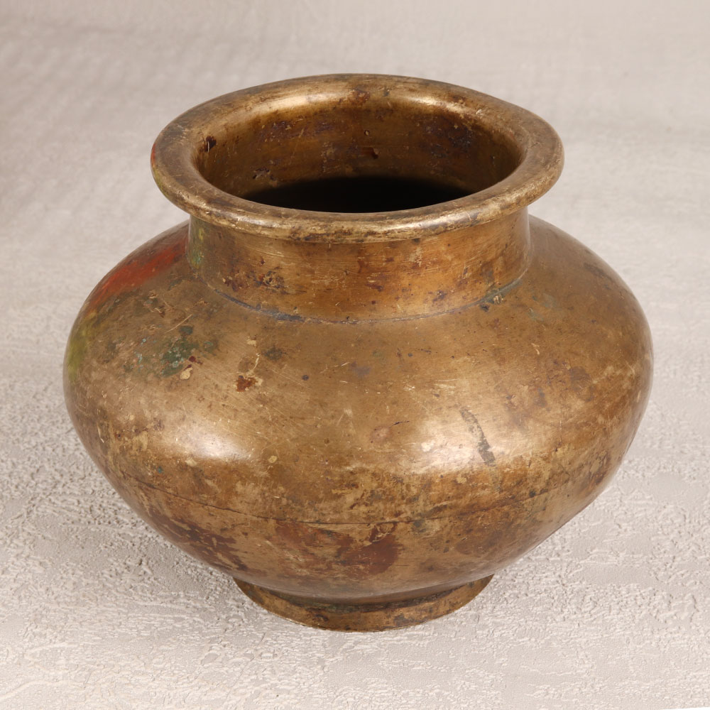 Buy a Vintage Brass Holy Water Pot online that is a timeless piece meticulously crafted by highly talented Indian artisans from the enchanting region of Himachal. This sacred vessel is fashioned from high-quality Brass and features a captivating antique brown finish that adds a touch of regality to any setting. Versatile in its use, the pot serves as a revered container for holy water during prayers, havans, and auspicious occasions. Additionally, its ornate design makes it a perfect receptacle for vibrant flower decorations. Embrace the rich cultural heritage embedded in every detail of this handmade masterpiece. Display it proudly in your home, office, restaurant, hotel, or cafe, where its presence radiates an aura of divine grace and vintage charm. An ideal addition to any vintage collection, this holy water pot is not only a symbol of spiritual devotion but also a thoughtful gift for your family, friends or relatives on special, festive, or auspicious occasions. Elevate your surroundings with this timeless creation that seamlessly blends tradition and artistry.