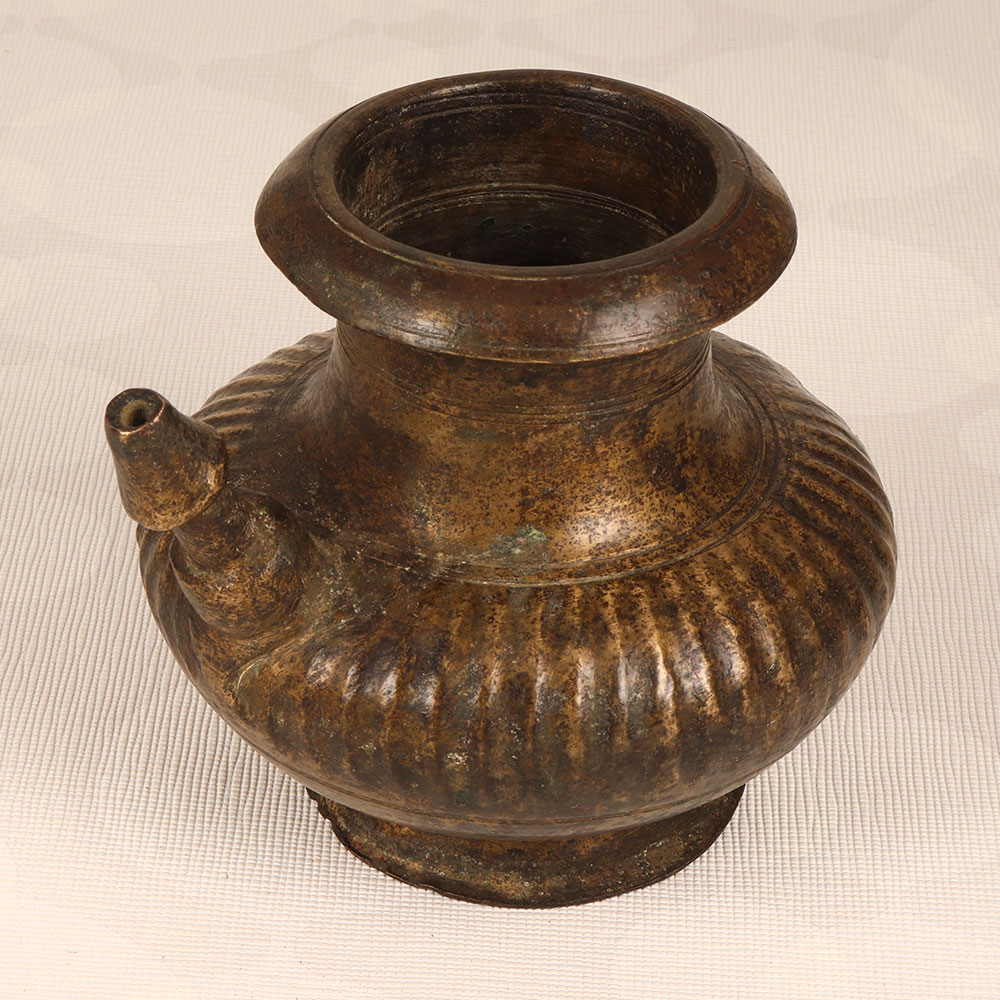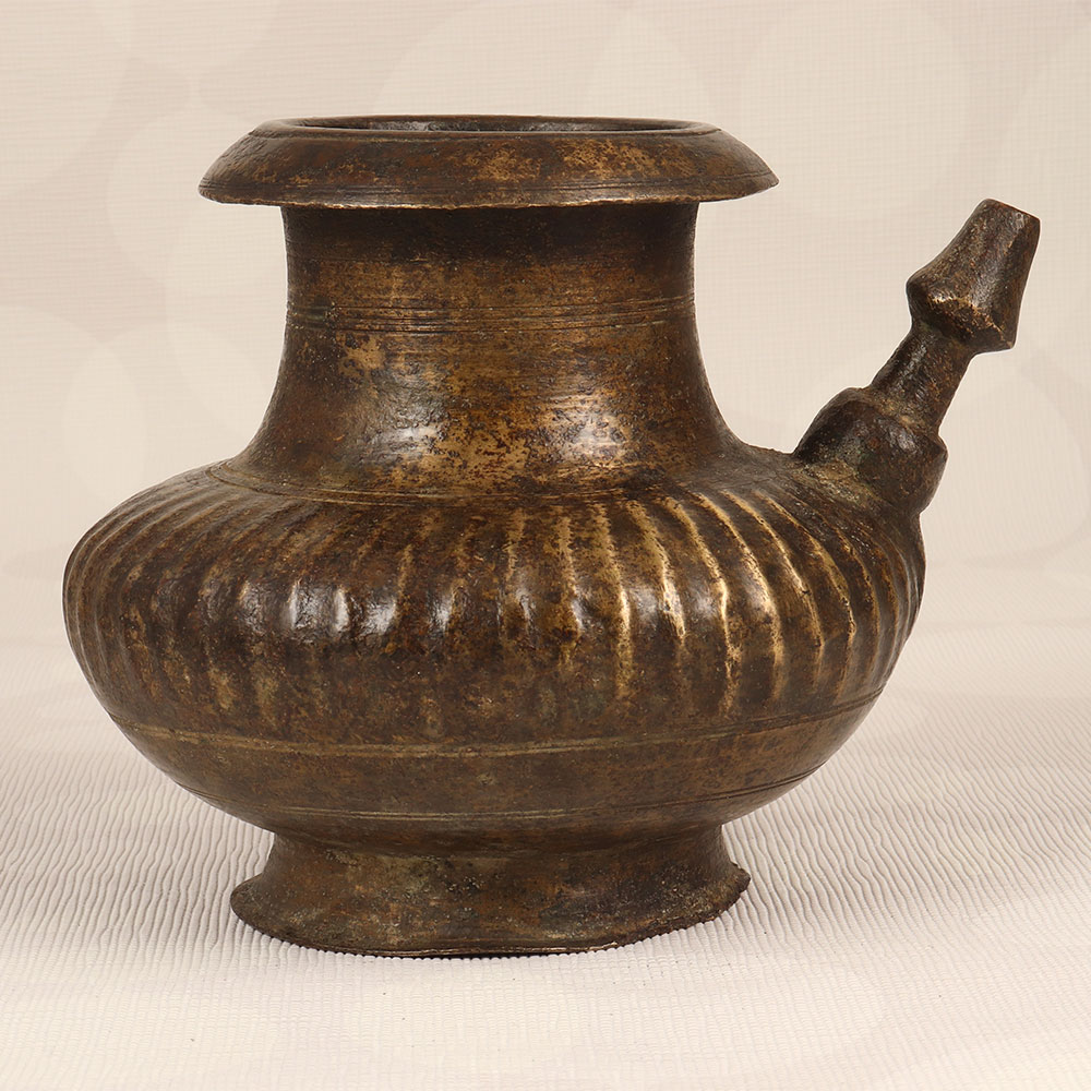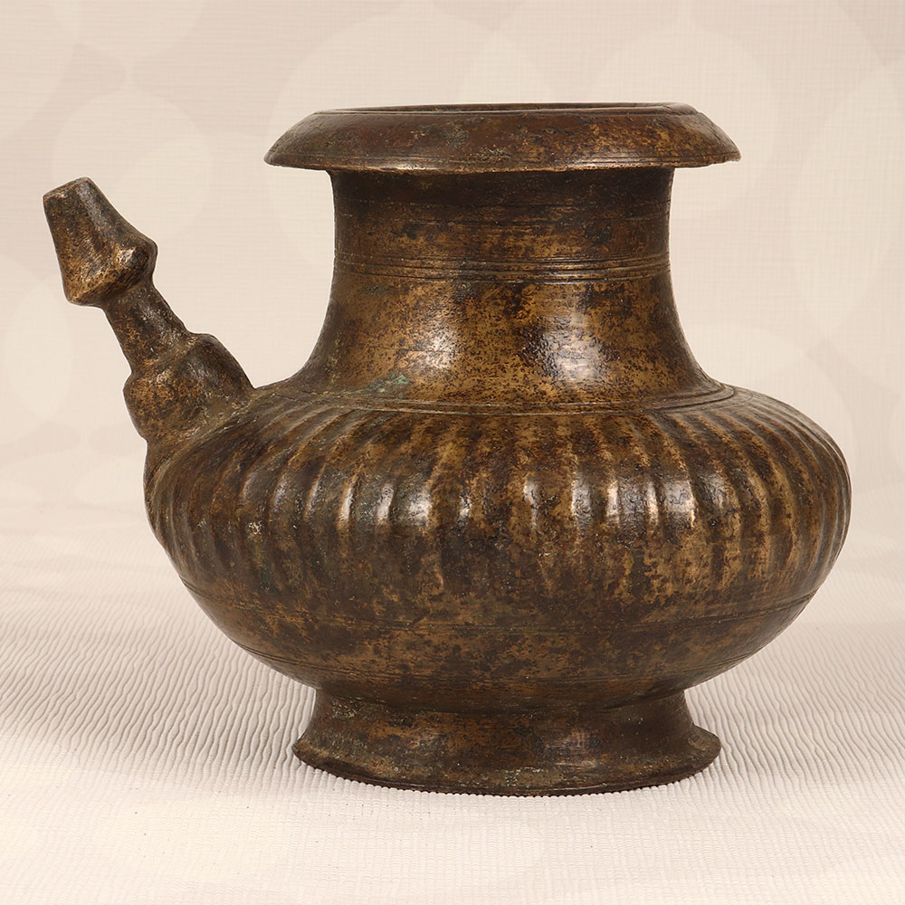 Enhance your space with the timeless charm of our Vintage Brass Holy Water Pot that is a masterpiece meticulously crafted by skilled Indian artisans from Gujarat. This exquisite piece showcases a dark brown finish that adds an air of sophistication and nostalgia to any setting. Handmade with precision and care, this holy water pot is fashioned from high-quality brass, ensuring durability and an authentic vintage feel. The pot features a gracefully designed spout, adding an extra touch of elegance to its overall aesthetic. Versatile in its use, this pot can be placed in various settings such as homes, offices, restaurants, hotels, or cafes, serving not only as a unique decoration but also as a distinctive indoor flower pot. Perfect for those who appreciate the artistry of handmade creations, this brass holy water pot can effortlessly become a focal point in any vintage collection. Furthermore, its thoughtful design makes it an ideal gift for your family, friends or relatives on special, festive, or auspicious occasions, bringing a blend of tradition and artistry into their lives. Embrace the cultural richness and aesthetic allure of this vintage piece, adding a touch of history and craftsmanship to your surroundings.