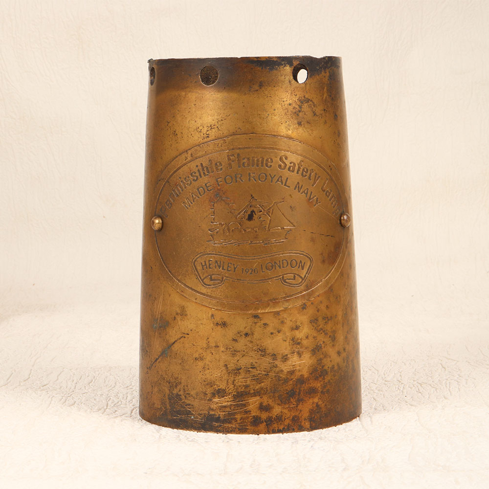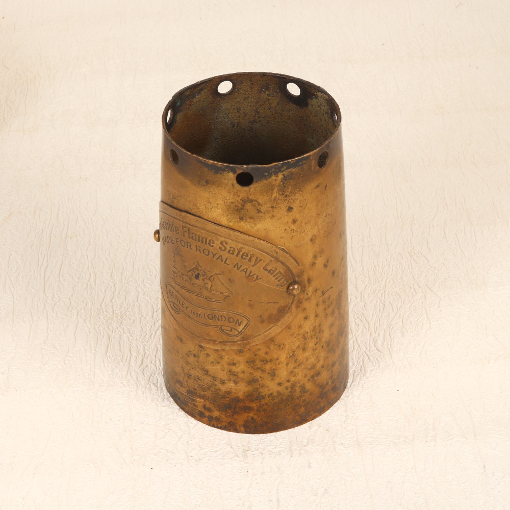 Buy a vintage brass lamp part online that seamlessly blends functionality with timeless elegance. Crafted in a distinctive pot-like shape, this exquisite artefact features remarkable engravings that tell a story of its rich heritage. The words "Permissible Flame Safety Lamp," "Made for Royal Navy," and "Henley 1920 London" evoke a sense of authenticity and historical significance, making it a unique and cherished addition to any space. Handmade by skilled artisans in the renowned English Art tradition, this brass lamp part boasts a lustrous antique brown finish that accentuates its vintage appeal. Its versatility shines through, as it can double as a distinctive flower pot, adding a touch of sophistication to your home, office, restaurant, hotel, or cafe. The meticulous craftsmanship and attention to detail make it a standout piece in any setting, while its historical connections make it a valuable addition to any vintage collection. Embrace the opportunity to share the beauty of the past by gifting this remarkable piece to your family, friends or relatives on special, festive, or auspicious occasions. With its timeless charm, this vintage brass lamp part invites you to own a piece of history while adding a touch of elegance to your surroundings.